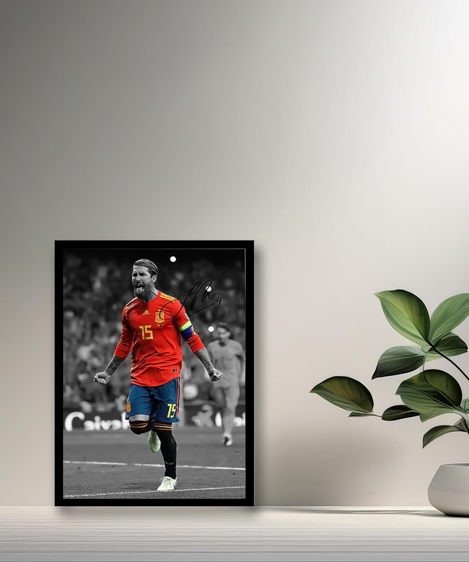 Un Chef-d'Œuvre Pour les Fans de Football et de Défenseurs de Légende Affichez votre admiration pour Sergio Ramos, l’un des défenseurs les plus emblématiques de l’histoire du football, avec ce cadre photo exceptionnel ! Imprimé en haute définition, chaque détail capture sa détermination, son charisme et ses moments iconiques avec le Real Madrid, le Paris Saint-Germain, et l'équipe nationale d'Espagne. Ses tacles puissants, ses buts décisifs et son leadership inégalé sont mis à l'honneur.