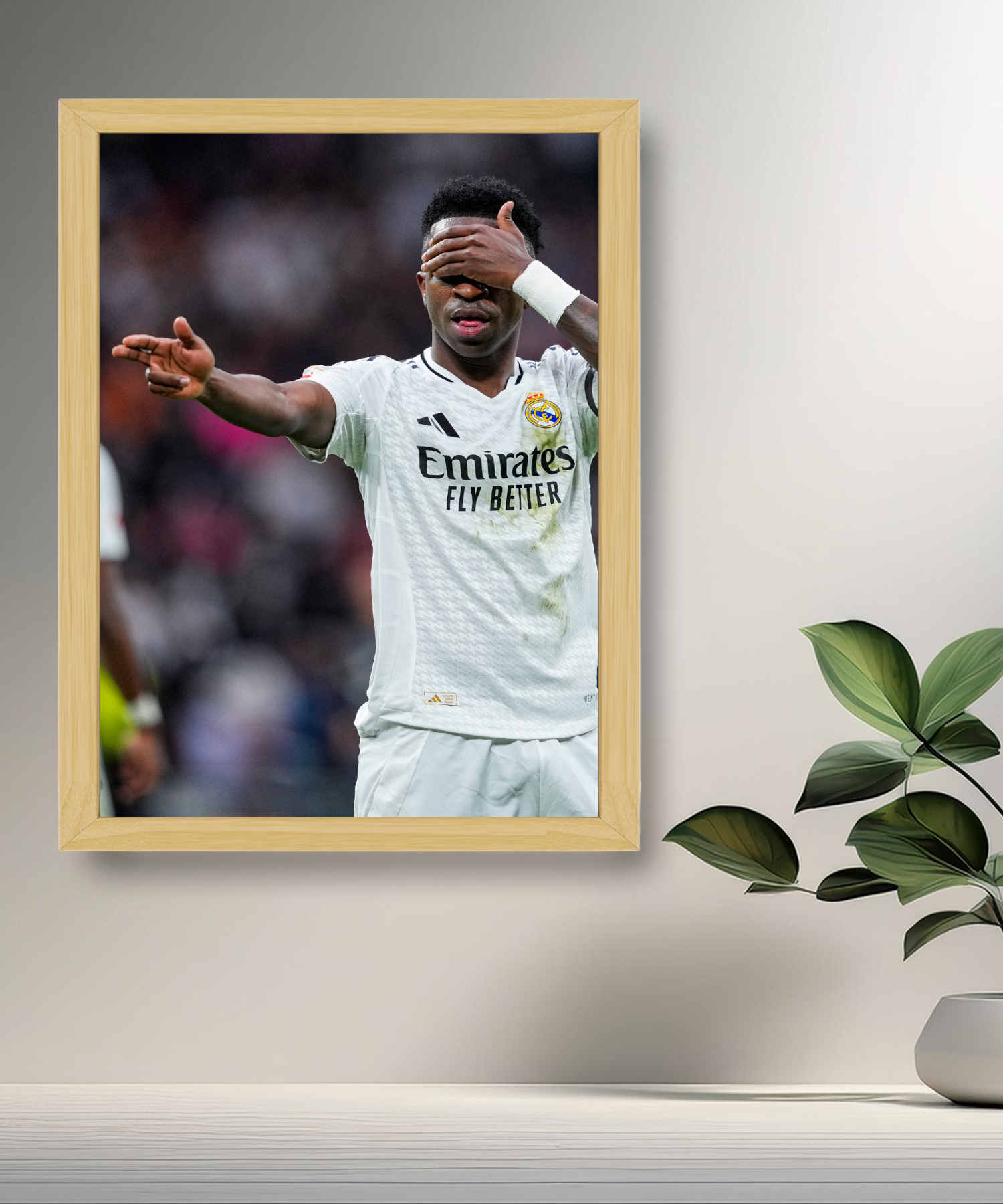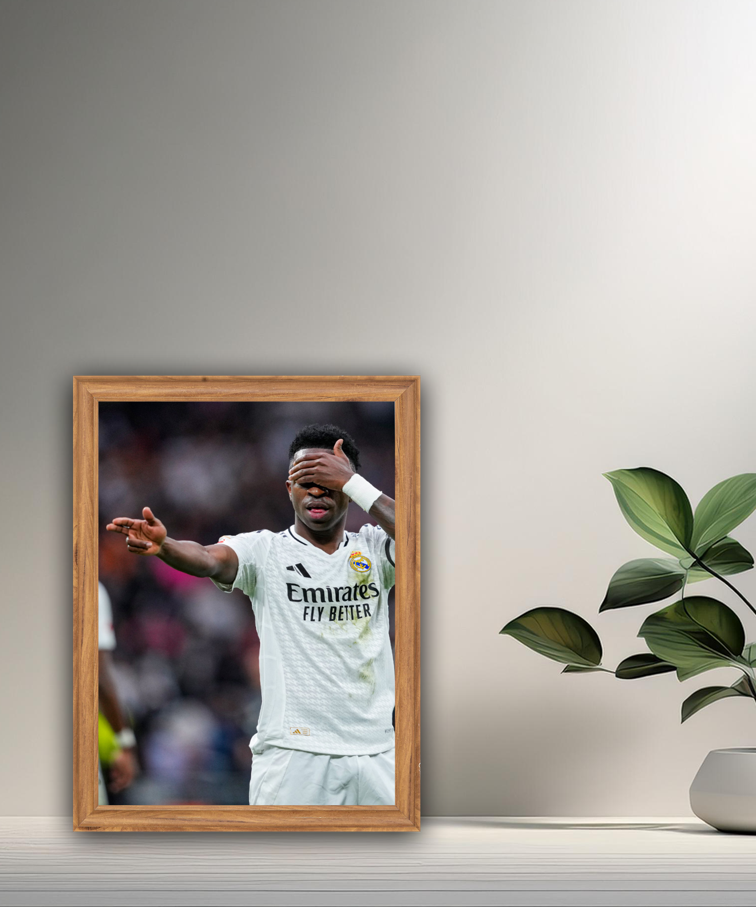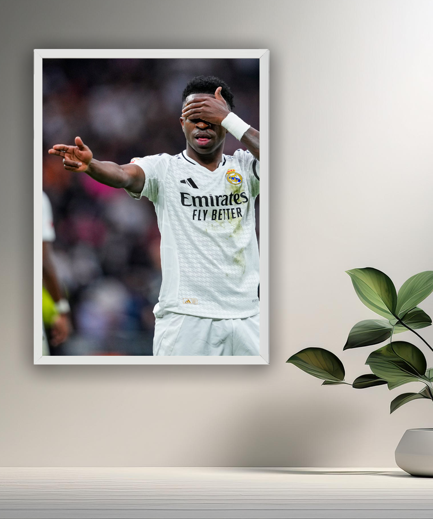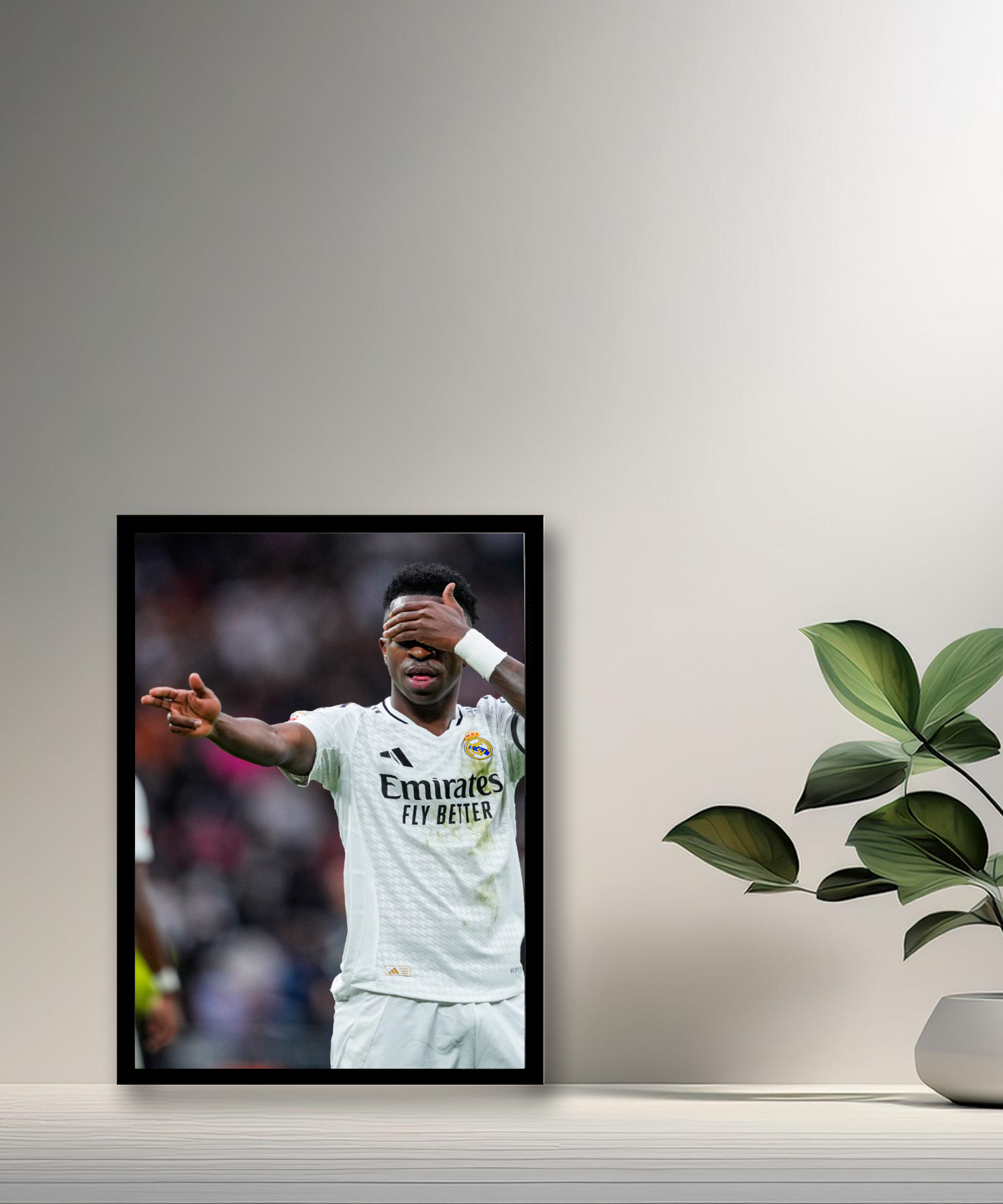 Un Chef-d'Œuvre Pour les Fans de Football et de Jeunes Talents Affichez votre passion pour Vinícius Jr, l’ailier explosif du Real Madrid, avec ce cadre photo impressionnant ! Imprimé en haute définition, chaque détail capture sa vitesse fulgurante, ses dribbles spectaculaires et ses buts décisifs, notamment lors de ses performances remarquables en Ligue des Champions. Ce cadre est parfait pour apporter une touche de dynamisme et de modernité à votre salon, bureau ou espace de jeu.