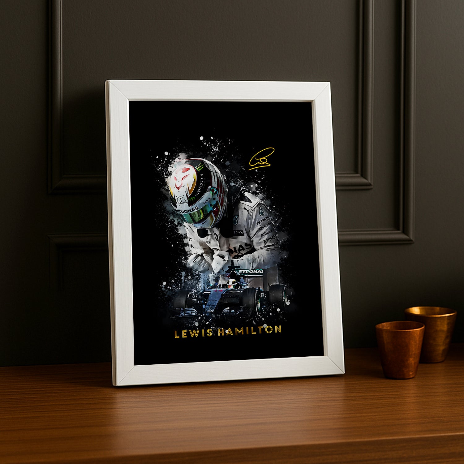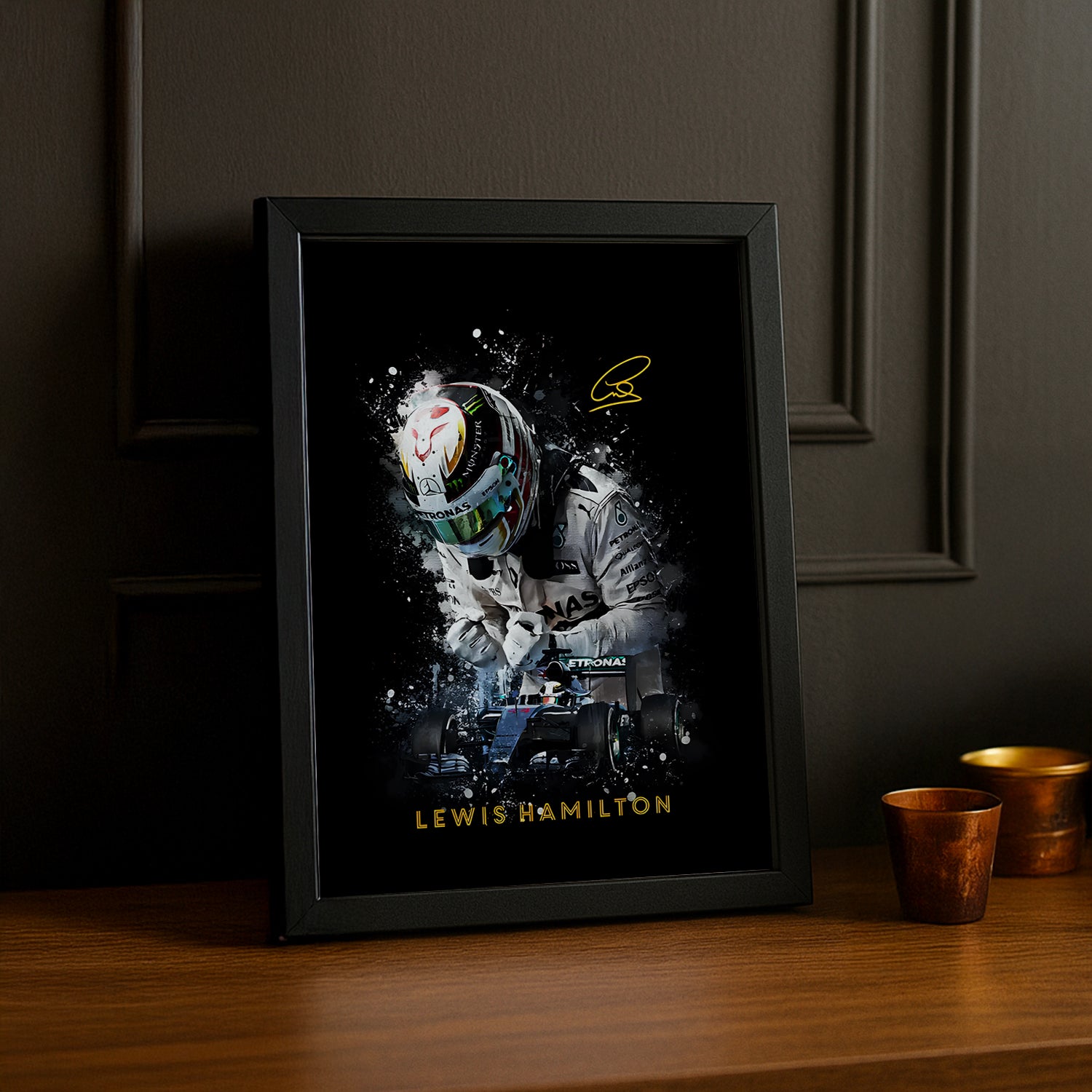 Affichez votre admiration pour Lewis Hamilton, l'un des plus grands pilotes de l'histoire de la Formule 1, avec ce cadre photo exceptionnel ! Imprimé en haute définition, ce cadre capture l'intensité, la passion et l'ingéniosité de Hamilton sur les circuits, tout en mettant en avant son incroyable parcours et ses multiples victoires.
