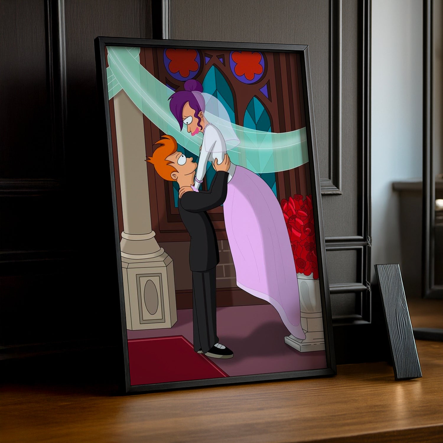 Célébrez l'amour futuriste avec ce cadre photo Futurama Wedding ! Immortalisez vos plus beaux moments romantiques inspirés par les unions hilarantes de la série. Ce cadre festif capture la magie des mariages loufoques et attachants de Planet Express, parfait pour les fans qui croient aux histoires d'amour improbables. Un accessoire décoration qui apporte joie et tendresse à votre intérieur. À installer pour transformer vos souvenirs en véritable conte de fées intergalactique !