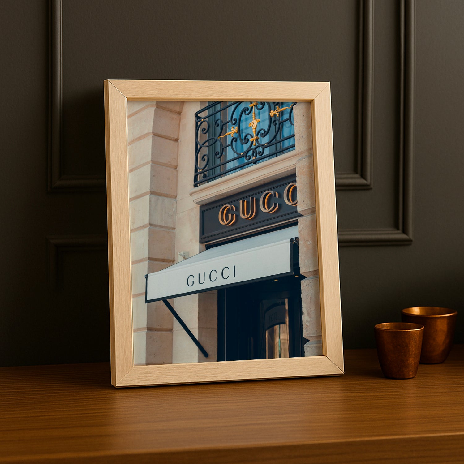 Admirez l'architecture du style avec ce Cadre Photo Gucci - Facade ! Inspiré par les façades majestueuses des boutiques Gucci à travers le monde, ce cadre apporte une dimension urbaine et prestigieuse à votre décoration. Idéal pour les amateurs d'architecture et de design urbain, il transforme vos photos en monuments de goût. Imposant, sophistiqué et terriblement Gucci, ce cadre invite à célébrer la beauté des structures iconiques. Une pièce qui respire le prestige et prouve que le vrai luxe se construit pierre par pierre, détail par détail !