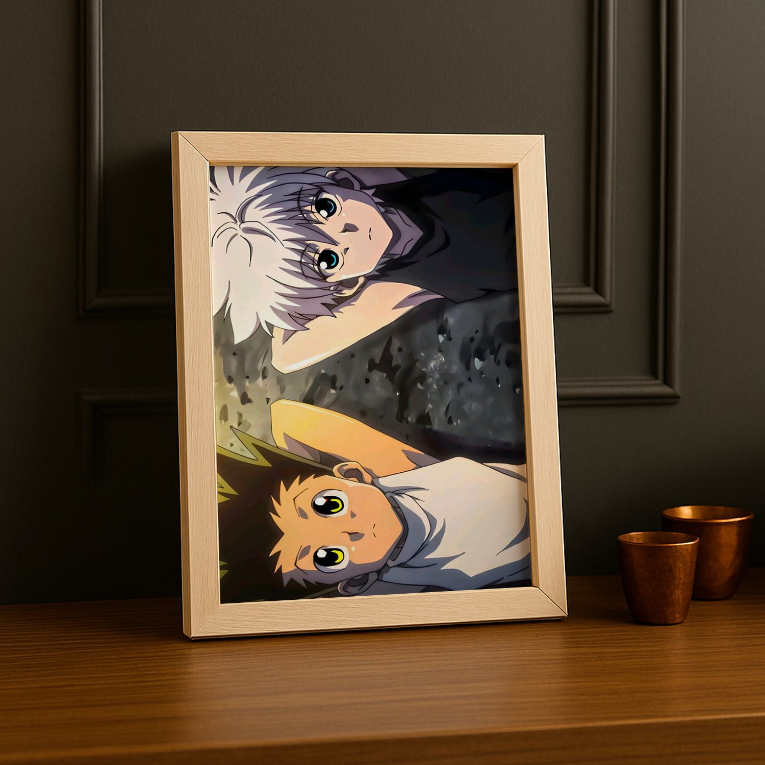 Célébrez l'amitié ultime avec ce cadre photo Hunter x Hunter - Kirua x Gon Best friends ! Immortalisant le lien indestructible entre ces deux compagnons de route, ce cadre capture la tendresse et la loyauté qui définissent leur relation. Son design chaleureux et ses teintes douces reflètent la profondeur émotionnelle de leur amitié sincère. Parfait pour les fans qui croient au pouvoir de l'amitié véritable, ce cadre apporte une touche de cœur et d'authenticité à votre décoration. Ses visuels touchants transforment votre mur en véritable hymne à la fraternité. À accrocher pour célébrer les meilleurs amis que l'anime ait jamais créés !
