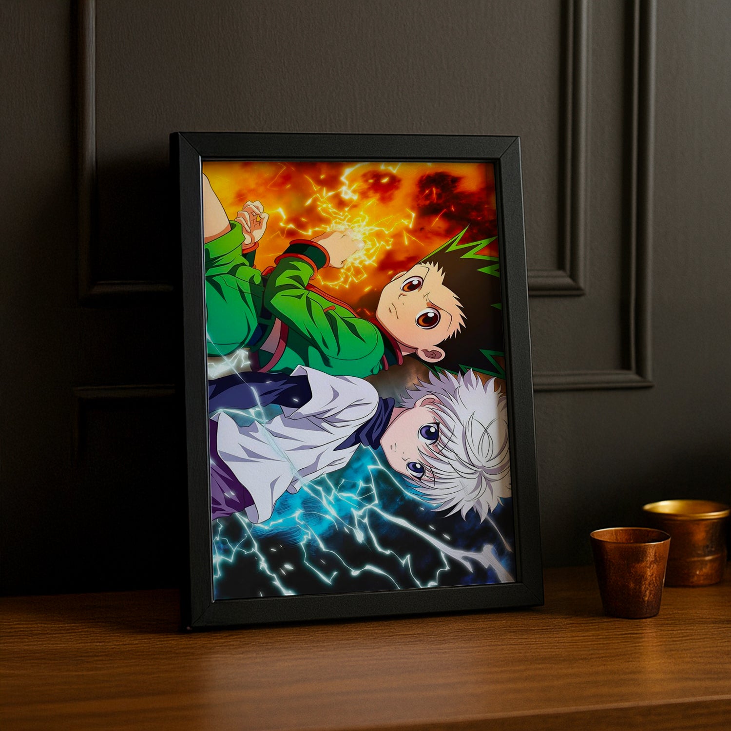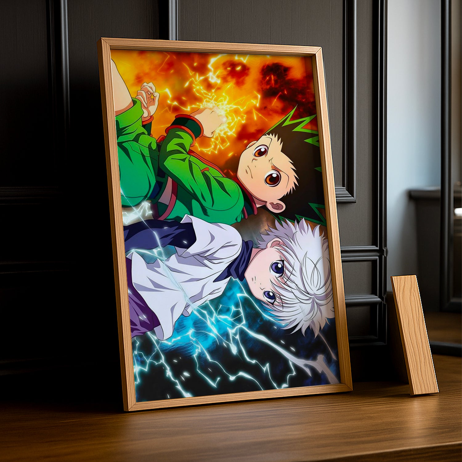 Explosez d'énergie avec ce cadre photo Hunter x Hunter - Kirua x Gon Energy ! Débordant de dynamisme et de puissance, ce cadre capture l'intensité électrisante de ce duo légendaire en pleine action. Son design explosif et ses couleurs vibrantes reflètent la force brute et l'enthousiasme débordant de leurs aventures. Parfait pour les fans qui adorent l'adrénaline et l'excitation de leurs combats épiques, ce cadre transforme votre mur en véritable célébration de leur puissance combinée. Ses visuels énergiques apportent une dose de passion et de vitalité à votre décoration. À accrocher pour canaliser toute l'énergie de ce tandem explosif !