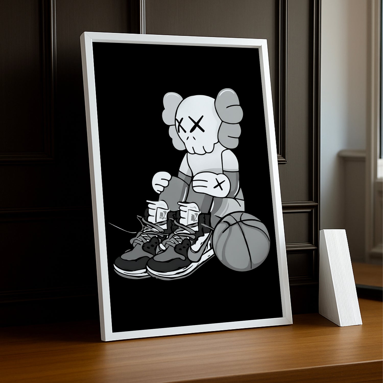 Affichez vos plus beaux souvenirs avec ce cadre photo Kaws représentant une assise de basketball. Ajoutez une touche d'humour et de style à votre décoration intérieure grâce à ce cadre unique. Idéal pour les fans de l'artiste et du sport. (Excellente idée cadeau pour les amateurs de basket !)