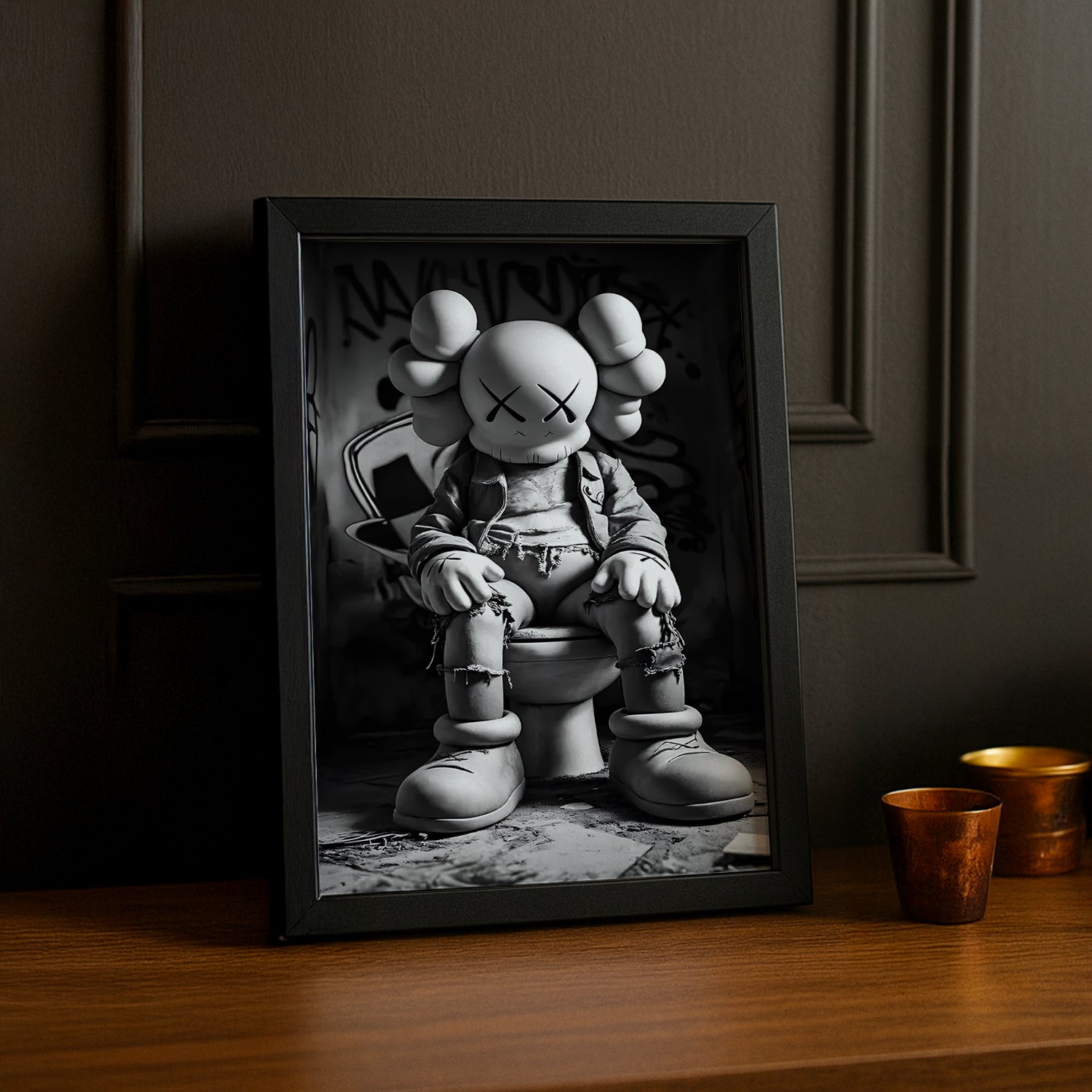Apportez une touche d’humour et d’originalité à votre déco avec le cadre photo Kaws - Toilette. Son design espiègle transforme vos photos en véritables œuvres fun et décalées, parfait pour égayer n'importe quel espace avec un clin d’œil malicieux.