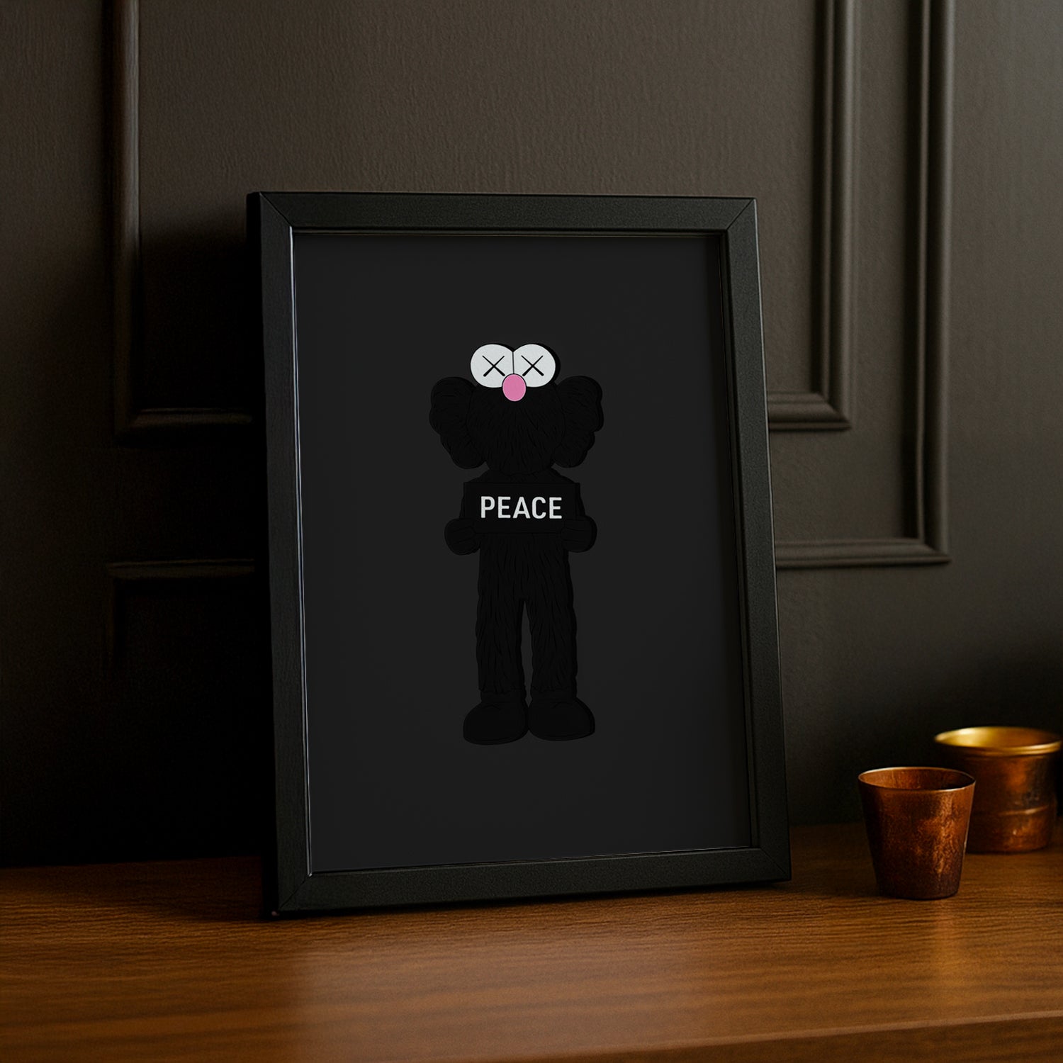 Affiche Kaws PAIX : Affiche Kaws avec design original ! Rendez votre mur plus funky avec cette superbe affiche de Kaws. Paix, amour et originalité font de cette affiche un must-have pour tous les fans de Kaws et du street art. (Amour et paix vendus séparément).