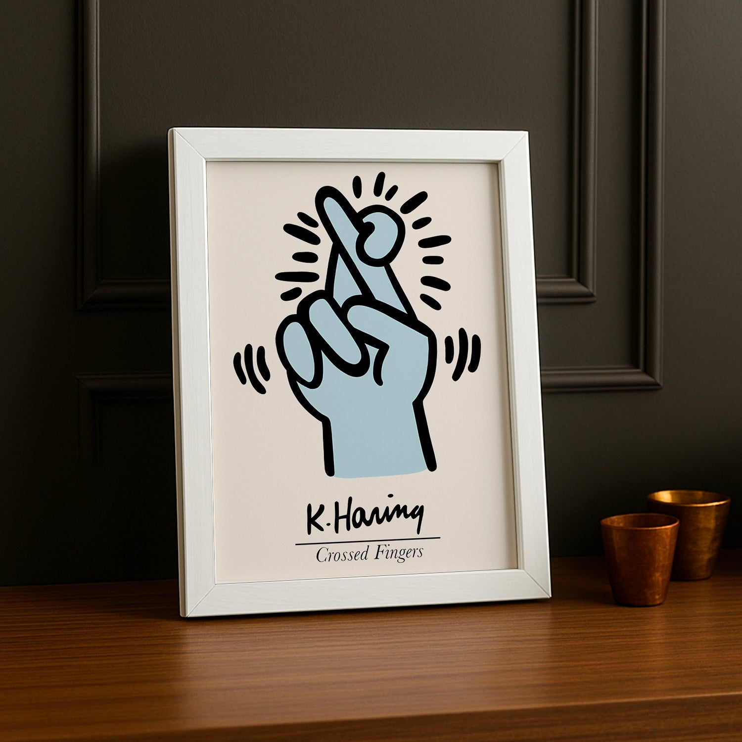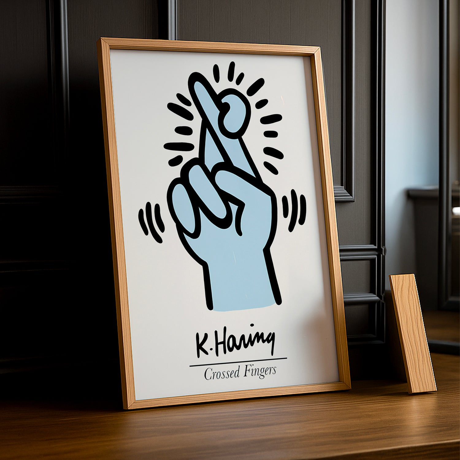 Croisez les doigts pour la bonne fortune avec ce cadre photo Keith Haring "Doigts croisés" ! Ses mains entrelacées, ses gestes pleins d'espoir et ses couleurs optimistes transmettent un message de vœux et de positivité. Parfait pour les superstitieux bienveillants et les amateurs d'art symbolique, ce cadre apporte une touche de magie et de bonne humeur à votre intérieur. Transformez vos photos en talismans de joie et d'optimisme !