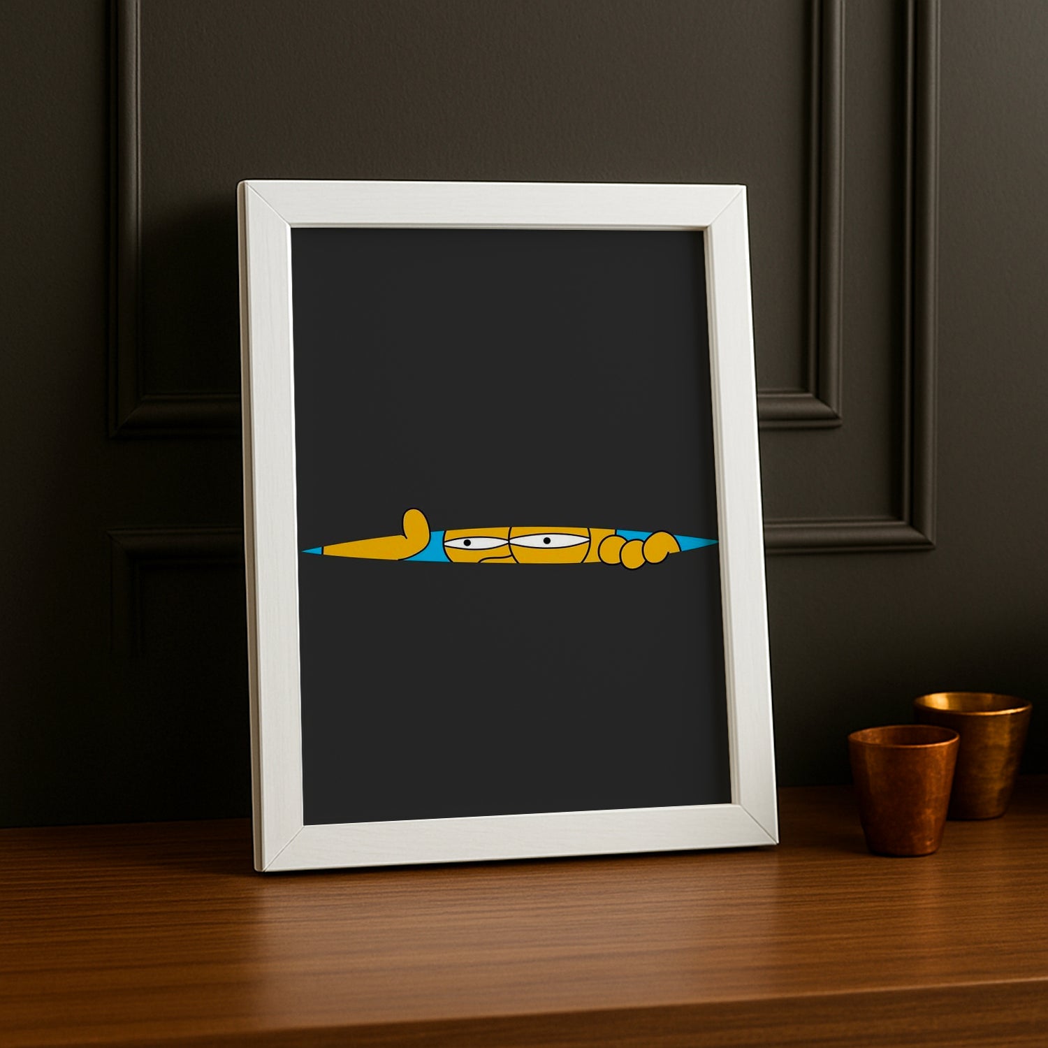 Sentez-vous observé avec ce cadre photo amusant et légèrement dérangeant ! Homer en mode surveillance, les yeux fixés sur vous avec une intensité hilarante. Ce cadre capture le côté espion involontaire du personnage, celui qui regarde tout ce qui se passe autour de lui avec une curiosité mélangée de suspicion. Parfait pour les fans qui adorent l'humour psychologique léger et les moments où Homer devient étrangement menaçant, ce cadre apporte une touche de malaise comique à votre décoration. La vitre protège votre photo tout en mettant en avant ce regard perçant inoubliable. Idéal pour un bureau, un salon ou tout espace qui a besoin d'une dose de surveillance Simpson !
