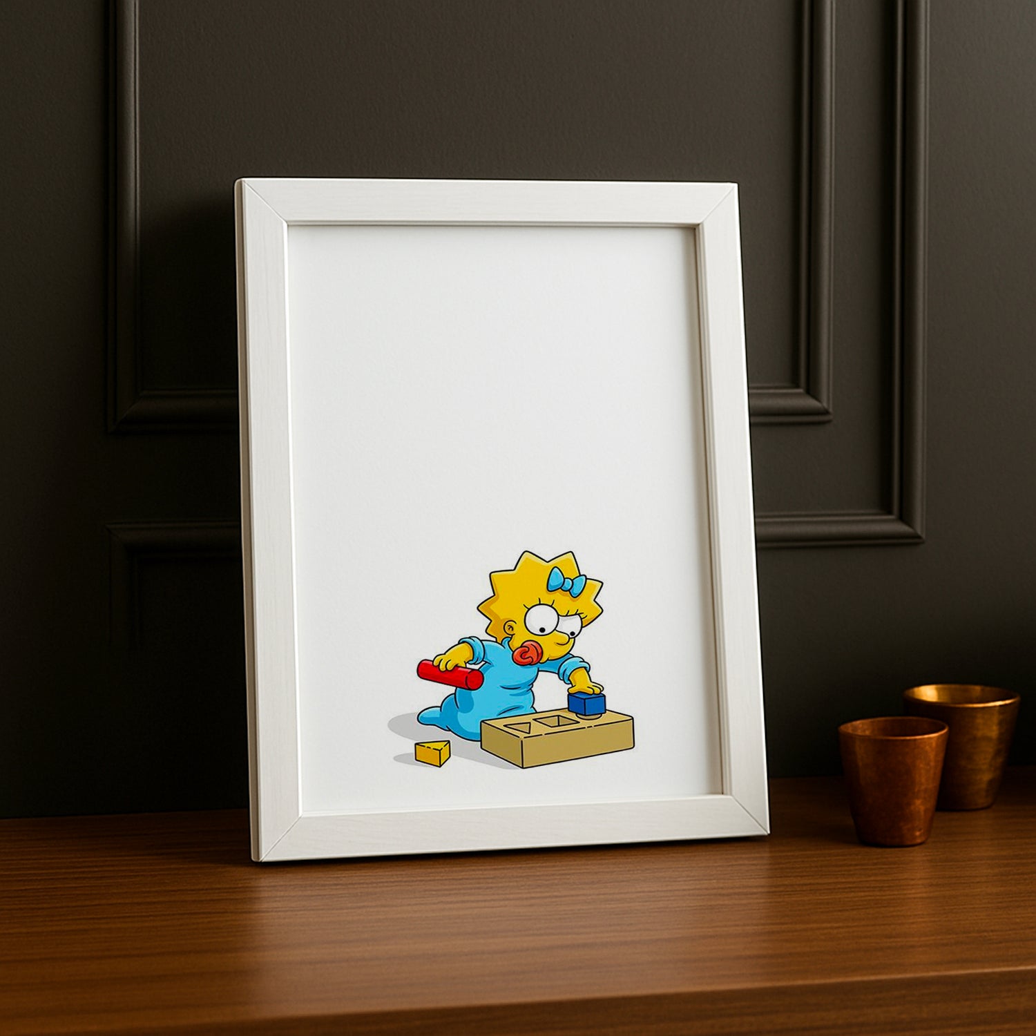 Célébrez l'enfance joyeuse avec ce cadre photo enchanteur ! Maggie entourée de ses jouets préférés, explorant le monde merveilleux des jeux et de l'imagination. Ce cadre capture la magie de l'innocence enfantine, où chaque jouet devient une source infinie de divertissement et de découverte. Parfait pour les fans qui adorent les moments ludiques et les scènes de pur bonheur enfantin, ce cadre apporte une touche de nostalgie joyeuse à votre décoration. La vitre protège votre photo tout en mettant en avant ce moment de jeu insouciant. Idéal pour une chambre d'enfant, une nurserie ou tout espace qui célèbre la magie des Simpson et les plaisirs simples de l'enfance !