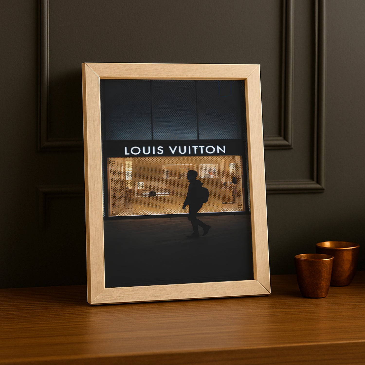 Plongez dans l’ambiance nocturne avec ce cadre photo Louis Vuitton by night. Parfait pour sublimer vos souvenirs sous une lumière mystérieuse et élégante, il apporte une touche chic et ludique à votre déco. Un accessoire idéal pour ceux qui aiment jouer avec les contrastes et le style après le coucher du soleil !