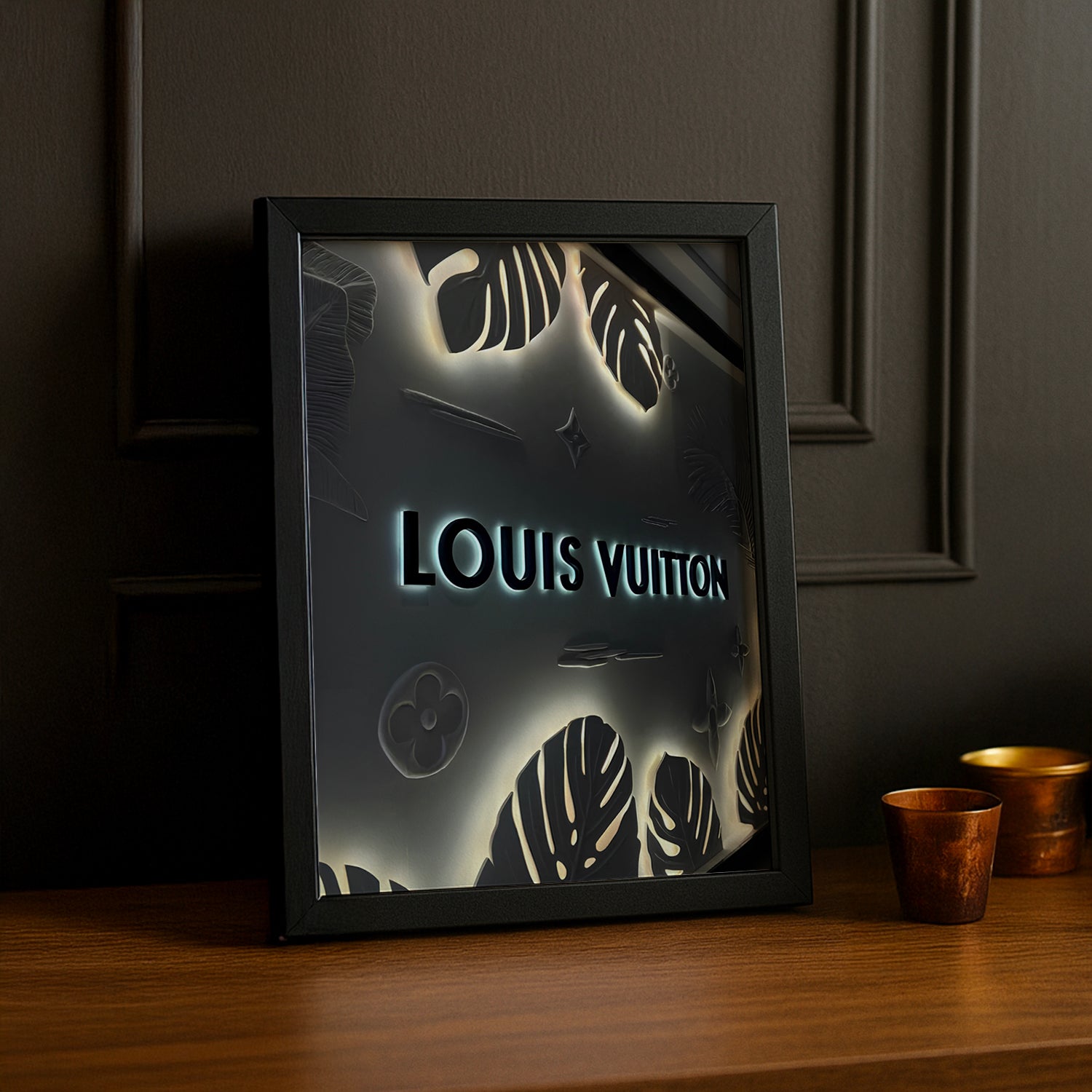 Brillez de mille feux avec ce cadre photo Louis Vuitton Logo Lumineux, où l'emblème de la maison s'illumine de prestige ! Combinant l'iconique signature avec une luminosité captivante, ce cadre transforme vos photos en véritables pièces d'exposition. Idéal pour les collectionneurs de luxe qui aiment les détails spectaculaires, il crée une ambiance glamour et remarquée. Un accessoire de décoration qui affirme votre style avec éclat et transforme chaque souvenir en moment de splendeur.