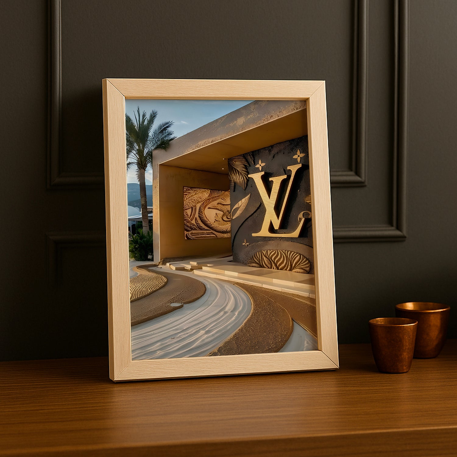 Plongez dans l'atmosphère estivale avec ce cadre photo Louis Vuitton Summer Devanture, inspiré par les vitrines enchantées de la maison ! Évoquant les façades colorées et accueillantes des boutiques parisienne en été, ce cadre capture la magie des découvertes et du shopping en plein soleil. Idéal pour encadrer vos moments de détente et vos escapades estivales, il apporte une dose de chaleur et de nostalgie à votre décoration. Un accessoire qui invite au voyage et à la rêverie.