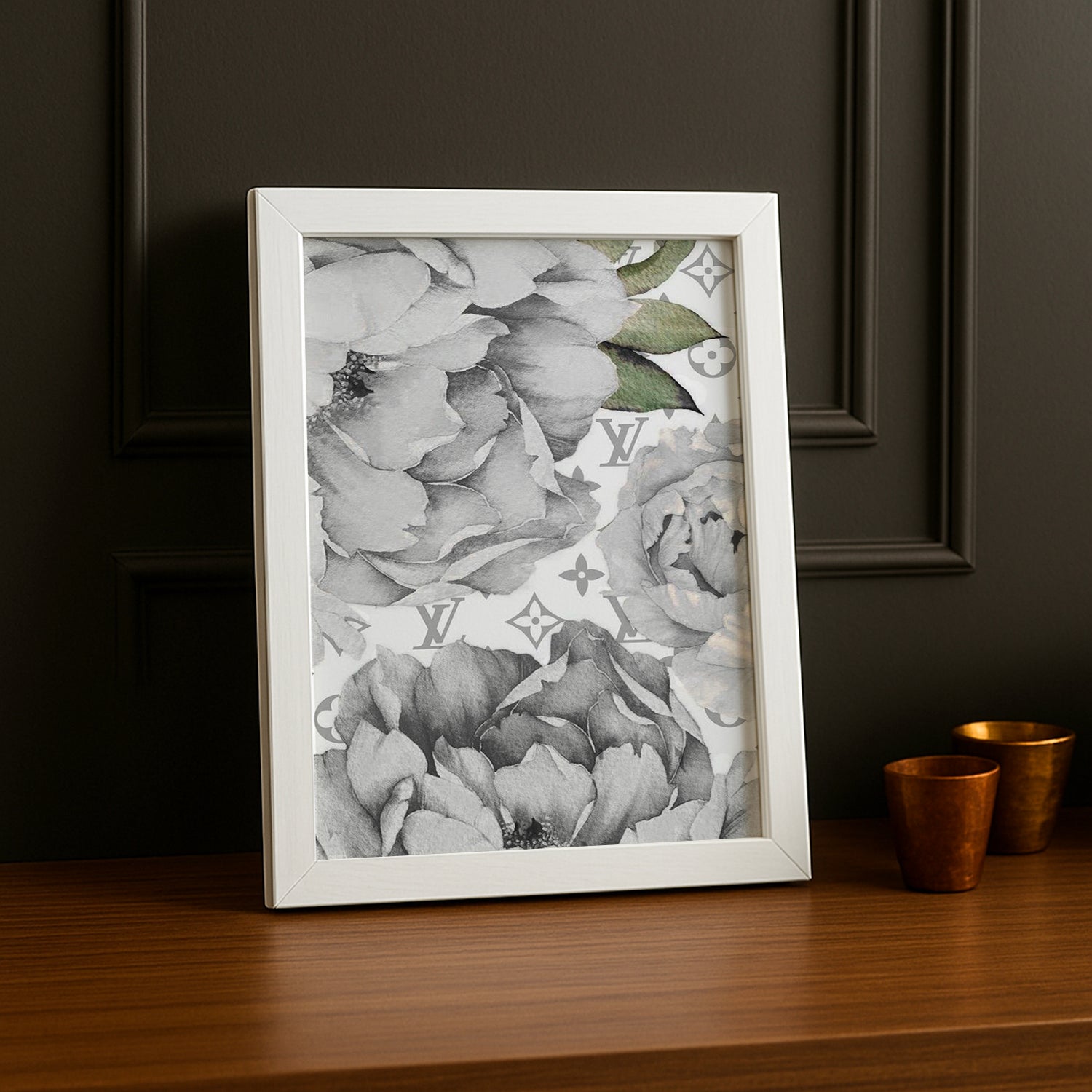 Envoûtez-vous avec ce cadre photo Louis Vuitton White Flowers, où la pureté florale rencontre le luxe parisien ! Orné de délicates fleurs blanches, ce cadre respire la sérénité et l'élégance intemporelle. Idéal pour sublimer vos clichés les plus tendres et romantiques, il crée une atmosphère poétique dans votre intérieur. Un accessoire de décoration qui transforme chaque photo en tableau de grâce et de sophistication.