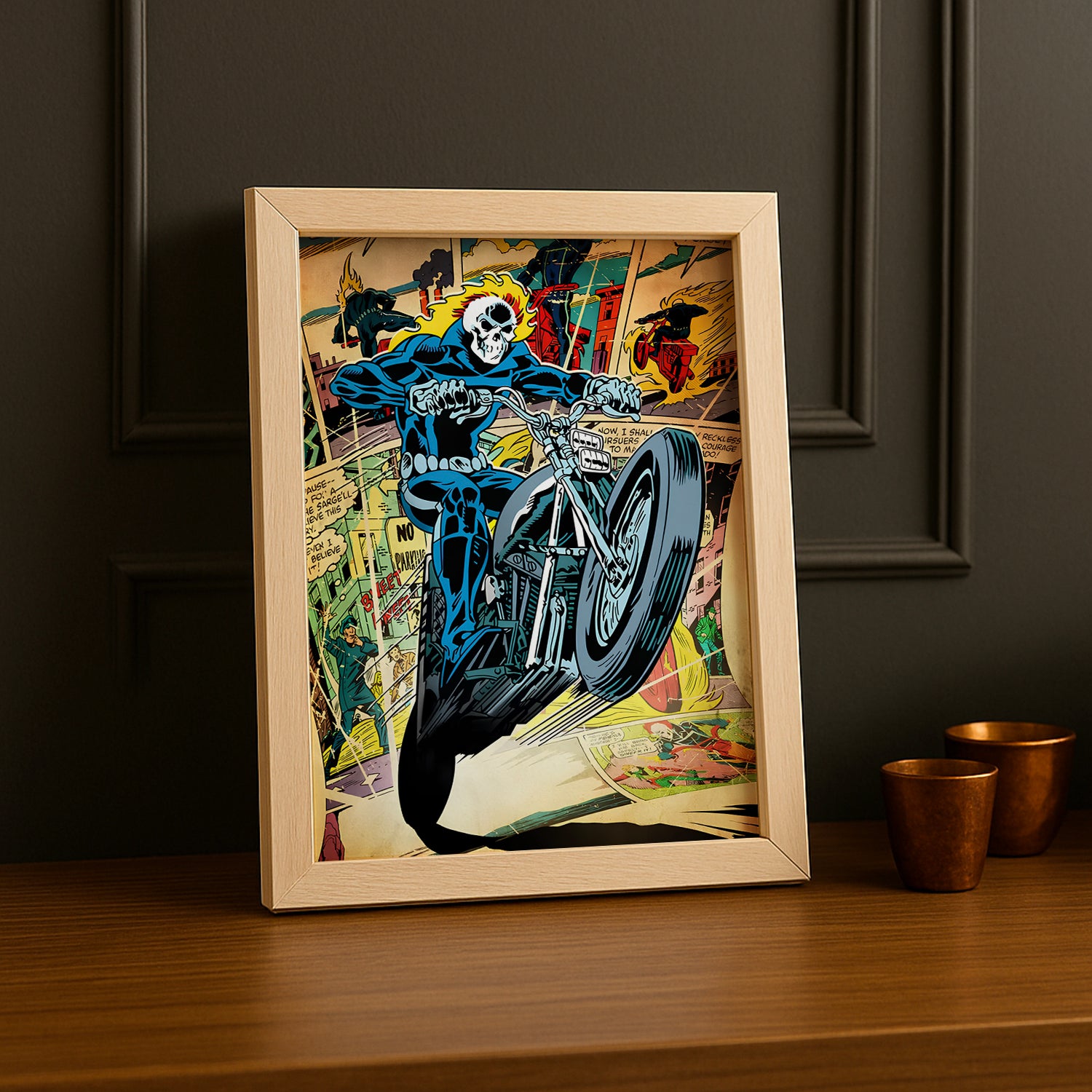 Que vous soyez un admirateur de l'univers sombre de Marvel ou à la recherche d’un cadeau unique pour un fan de super-héros, ce cadre Ghost Rider est l'accessoire parfait pour une décoration puissante et captivante.