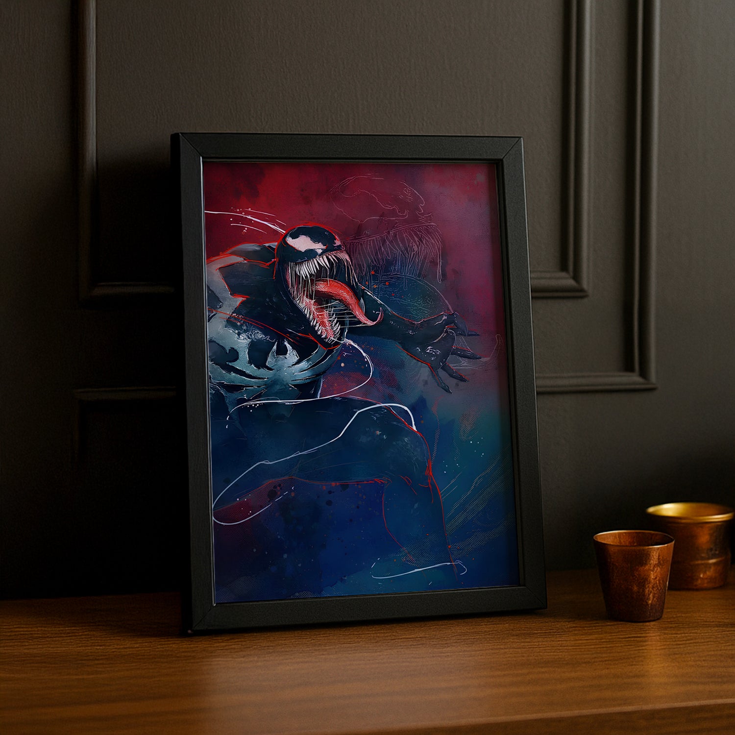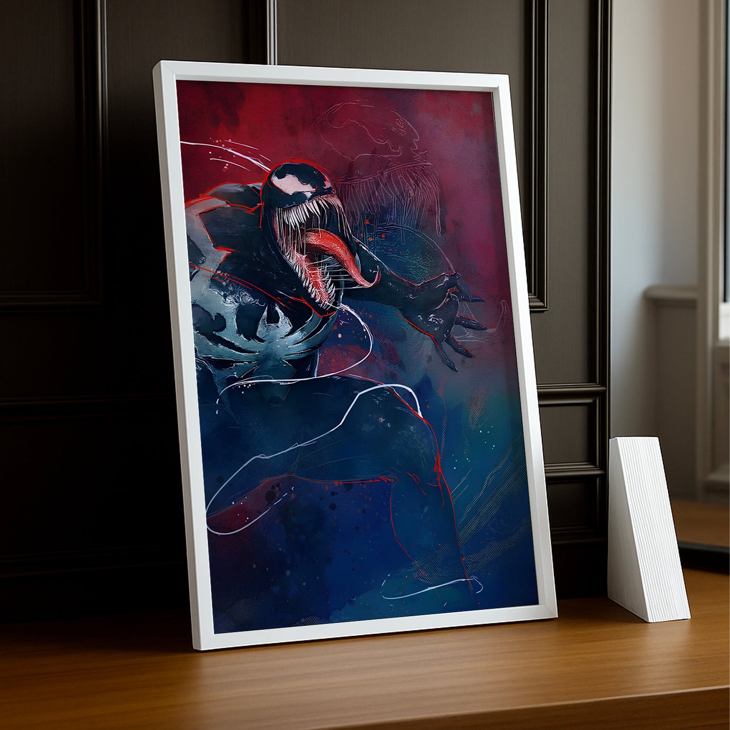 Affichez votre fascination pour Venom, le symbiote le plus emblématique de l'univers Marvel, avec ce cadre photo saisissant ! Imprimé en haute définition, ce cadre capture l'intensité et la puissance de Venom, l'antihéros aux pouvoirs incroyables et au look inoubliable. Que ce soit dans ses moments de rage ou de lutte contre ses ennemis, Venom incarne la dualité, le chaos et la force brute.
