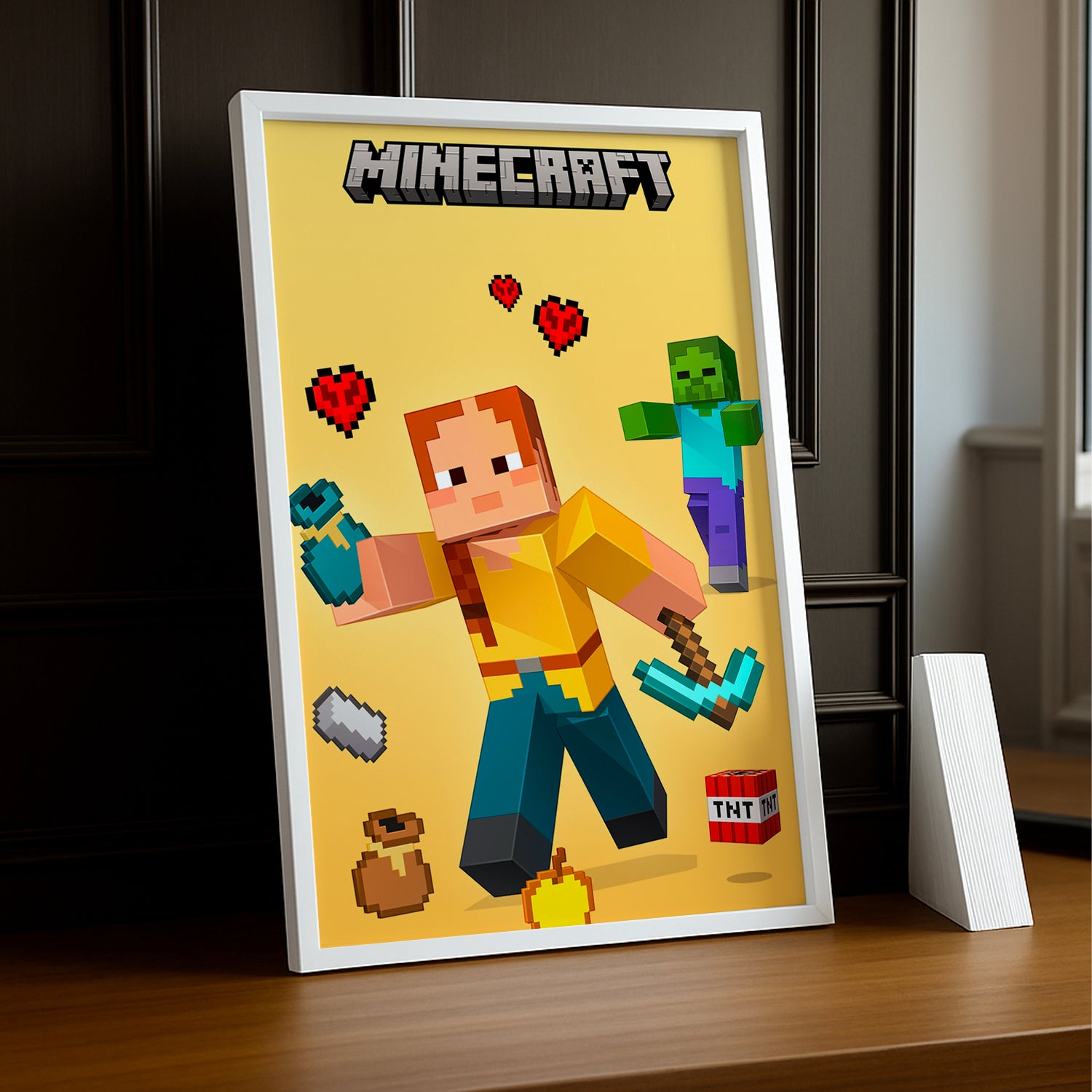 Affichez votre courage pixelisé avec ce cadre photo Minecraft "Bundles of Bravery". Parfait pour garder en mémoire vos exploits audacieux, il ajoute une touche fun et colorée à votre déco. Une célébration ludique de toutes vos aventures héroïques dans le monde Minecraft !