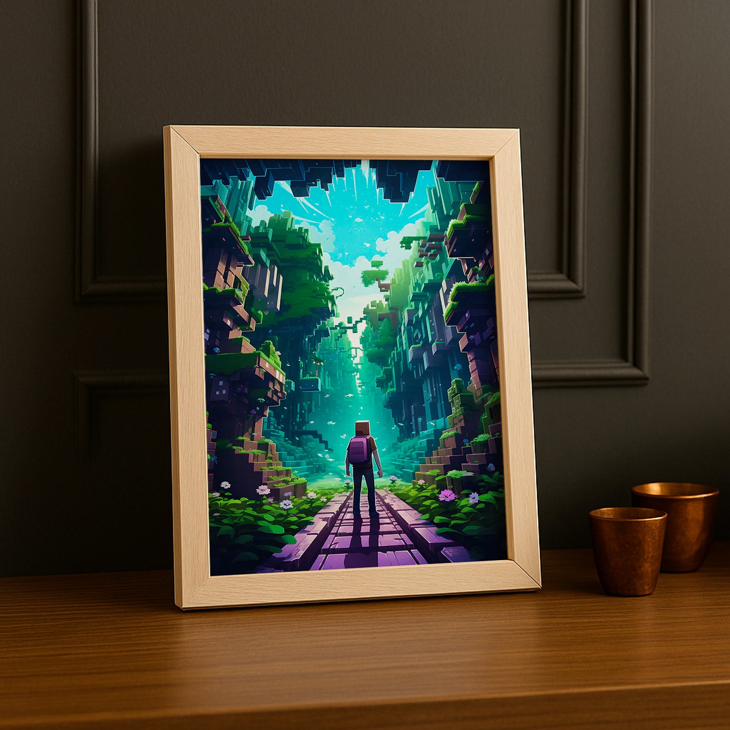 Plongez dans l’univers fascinant de Minecraft avec ce cadre photo "Cavernes et falaises". Idéal pour garder vos souvenirs de jeu à portée de main, il apporte une touche pixelisée pleine de vie à votre déco. Parfait pour les fans qui veulent afficher fièrement leurs aventures souterraines et paysages vertigineux !