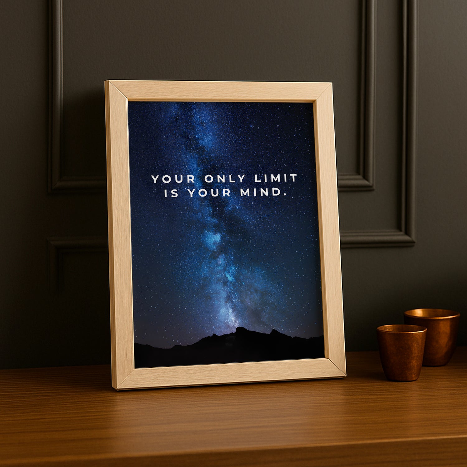 Ajoutez une touche de pep’s à votre déco avec ce cadre photo motivant affichant : « Your Only Limit Is Your Mind ». Un rappel joyeux que votre esprit est la clé pour dépasser toutes les limites. Parfait pour booster votre confiance au quotidien avec légèreté !