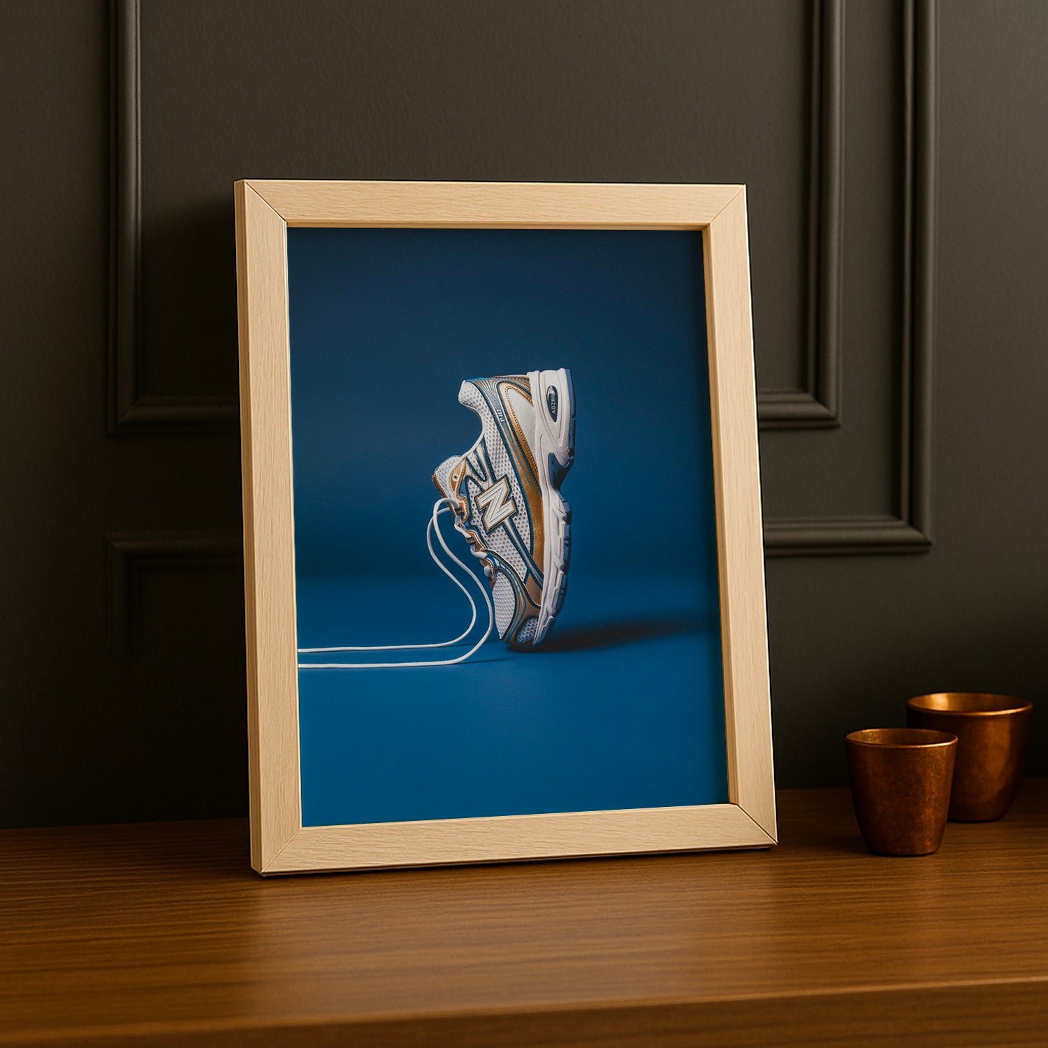 Brillez avec style grâce à ce cadre photo New Balance 740 Gold, où l'élégance dorée rencontre l'héritage sneaker. Cette finition premium sublime vos photos préférées en les transformant en véritable objet de prestige. Parfait pour mettre en avant vos moments les plus précieux, il ajoute une touche de luxe discret à votre espace. Un choix raffiné pour les vrais fans de New Balance qui veulent que leurs souvenirs brillent de mille feux !