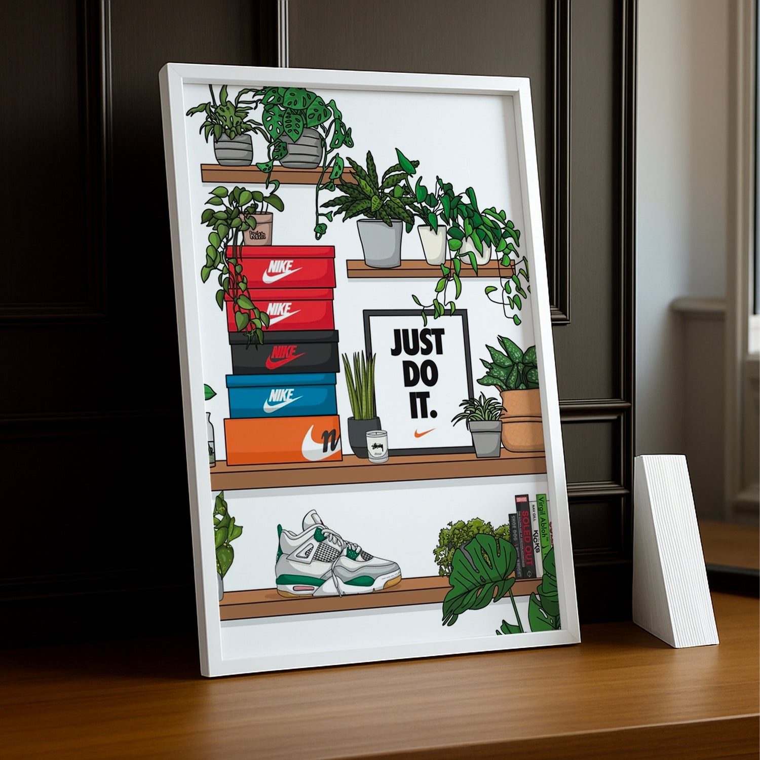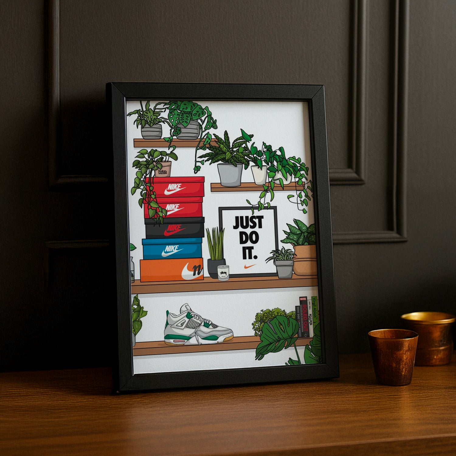 Affichez fièrement vos souvenirs avec notre cadre photo Nike pour votre mur. Montrez votre amour pour la marque avec ce cadre unique et moderne. Un must pour les fans de Nike. (Nike - Just Do It)