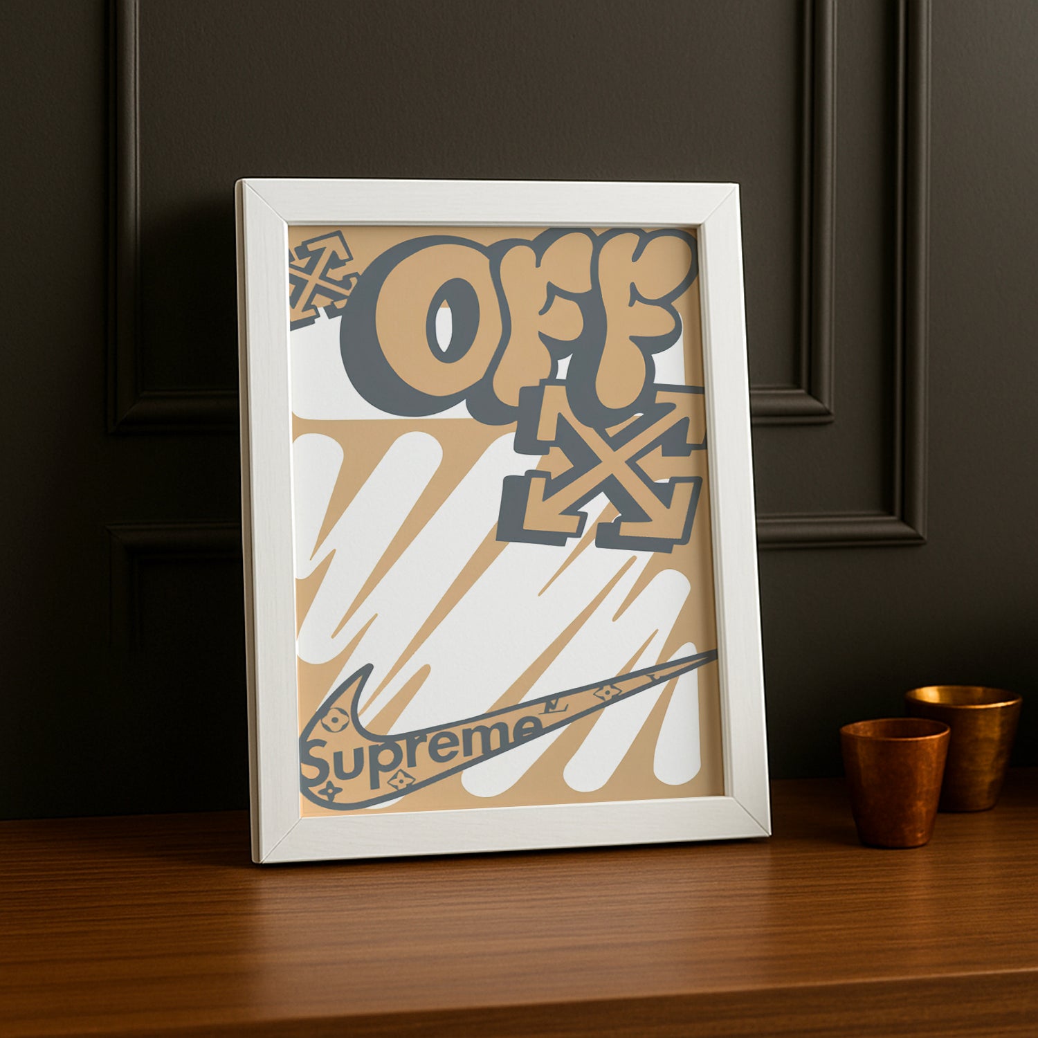 Exposez vos souvenirs avec style avec le cadre photo Nike x Off-White! Offrez à vos photos un look unique et original grâce à ce cadre de haute qualité. Un must-have pour les fans de style urbain et de culture streetwear. (Pas seulement pour les baskets!) #sneakerheads