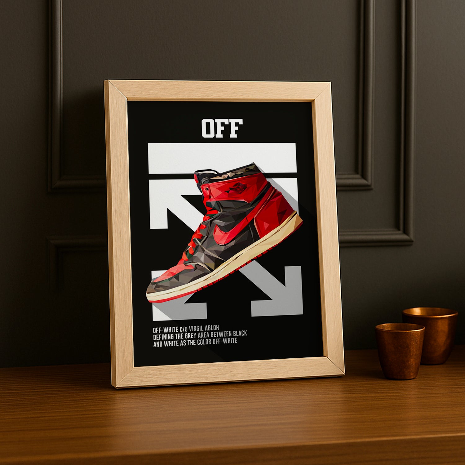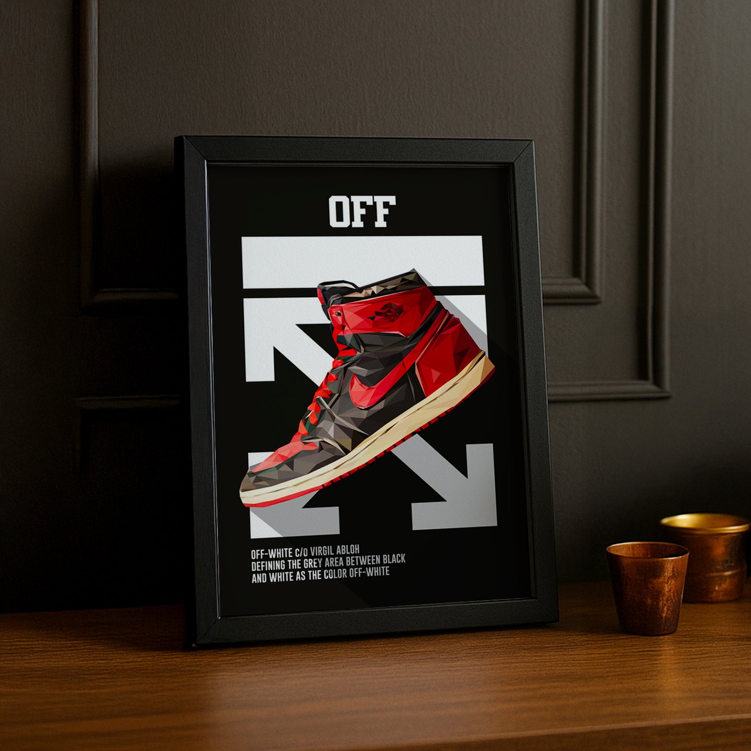 Mettez votre sneakerheaditude en valeur avec le cadre photo Off-White Air Jordan 1 Chicago. Accrochez-le fièrement sur votre mur et montrez votre passion pour les baskets de collection. Un must-have pour tout collectionneur de baskets avec un goût pour le style unique d'Off-White. Ajoutez-le à votre collection aujourd'hui!