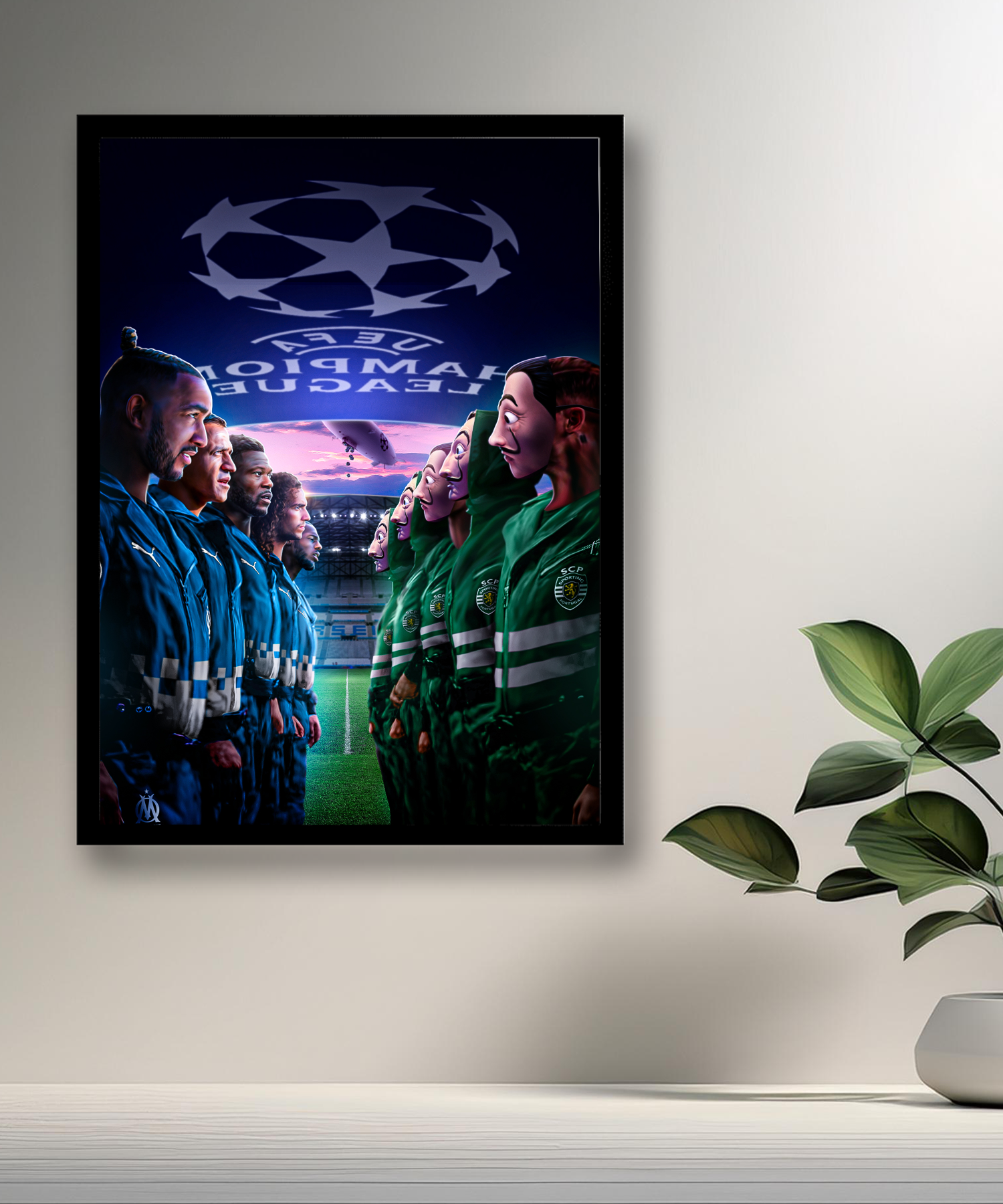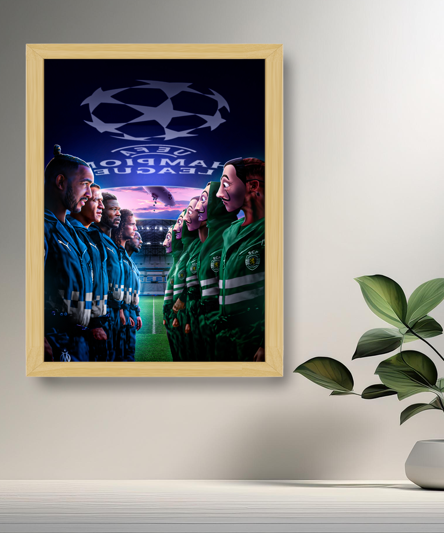Cadre photo Olympique de Marseille Champions League, victoire historique de 1993. Parfait pour les passionnés de football et fans de l’OM.