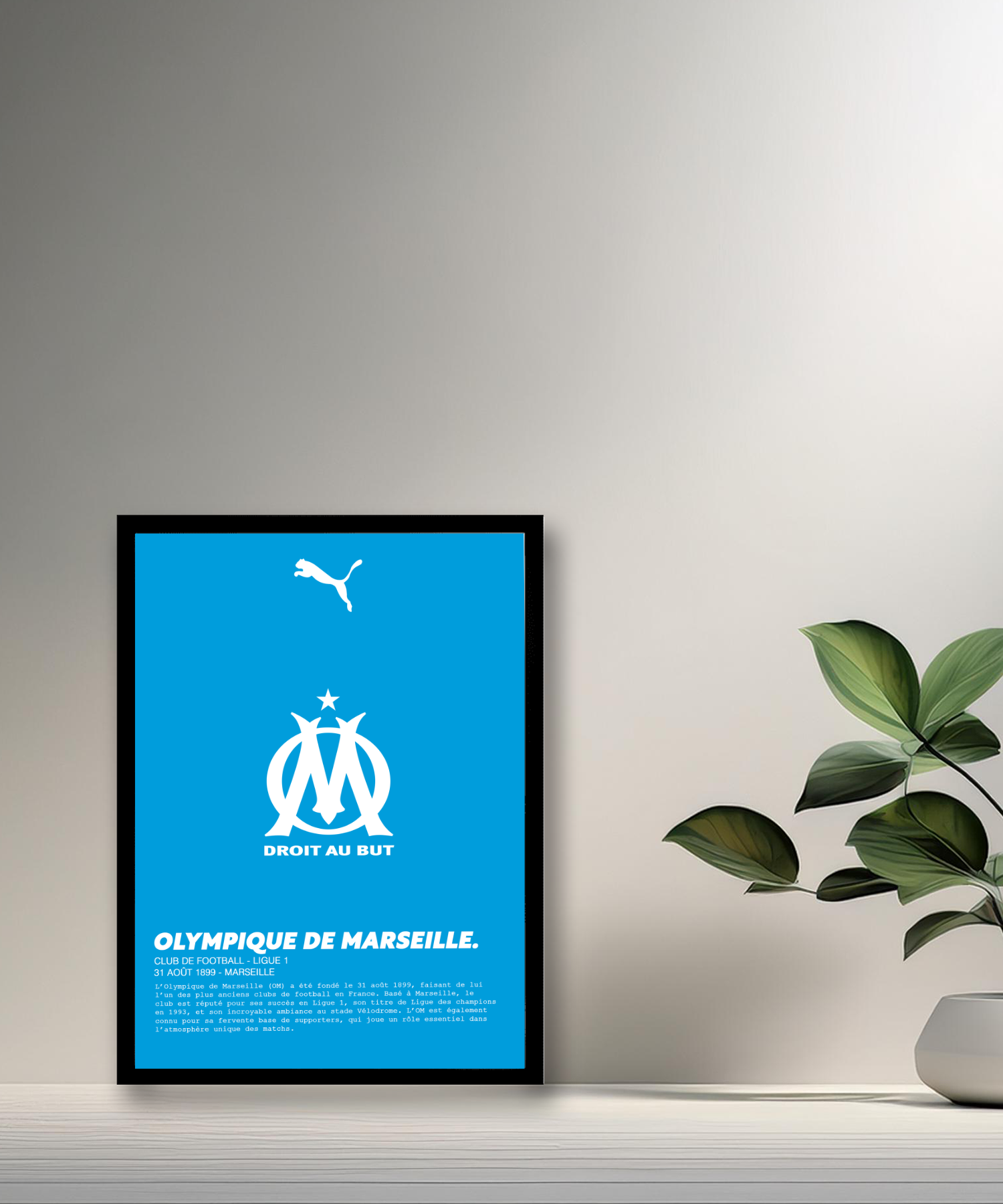 Cadre photo avec le logo emblématique de l'Olympique de Marseille. Parfait pour afficher fièrement votre passion pour l'OM dans votre intérieur !