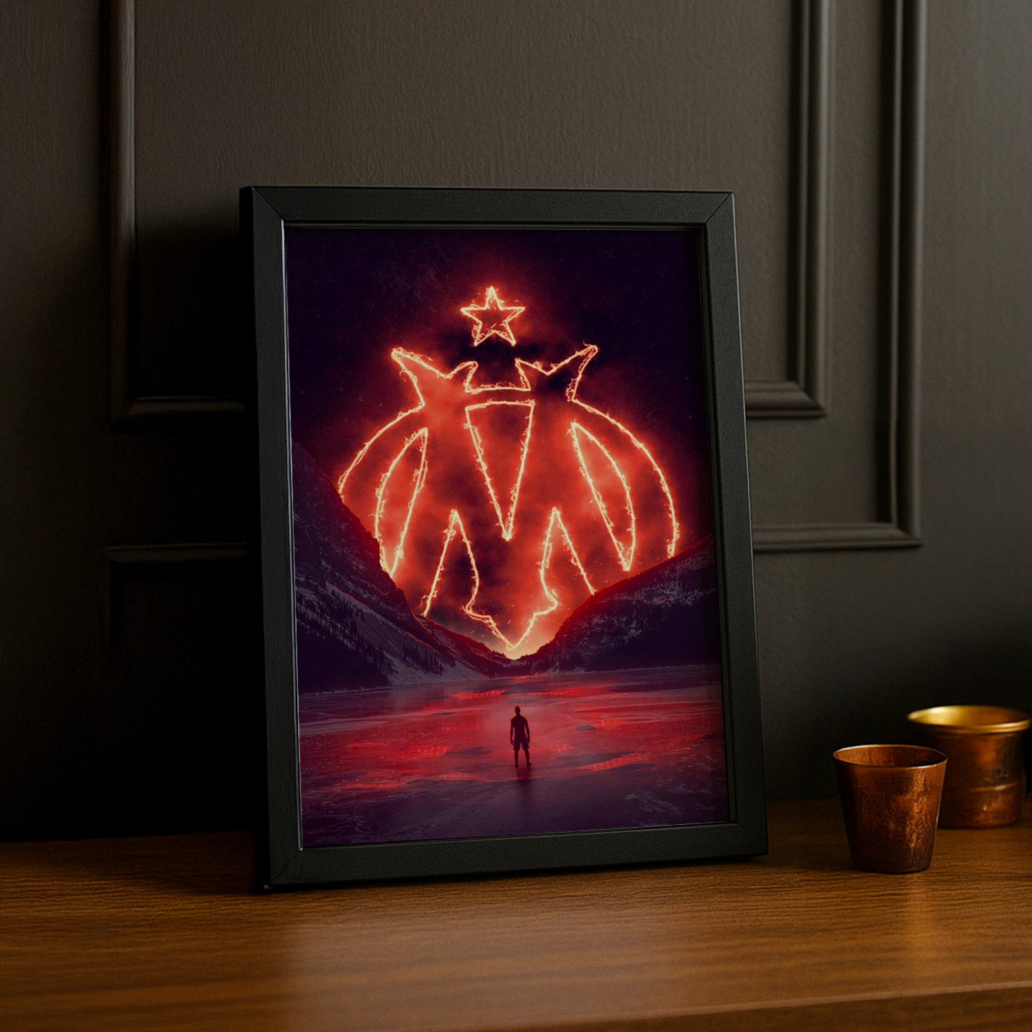 Laissez brûler votre amour pour l'OM avec ce cadre photo au logo enflammé ! Dynamique et intense, ce cadre incarne la passion déchaînée des supporters marseillais. Mettez en lumière vos photos les plus mémorables : un but décisif, une célébration en folie ou un portrait de légende olympienne. Le design flamboyant du logo ajoute une touche d'énergie à votre décoration. Idéal pour les vrais amoureux du club qui ne font pas les choses à moitié !