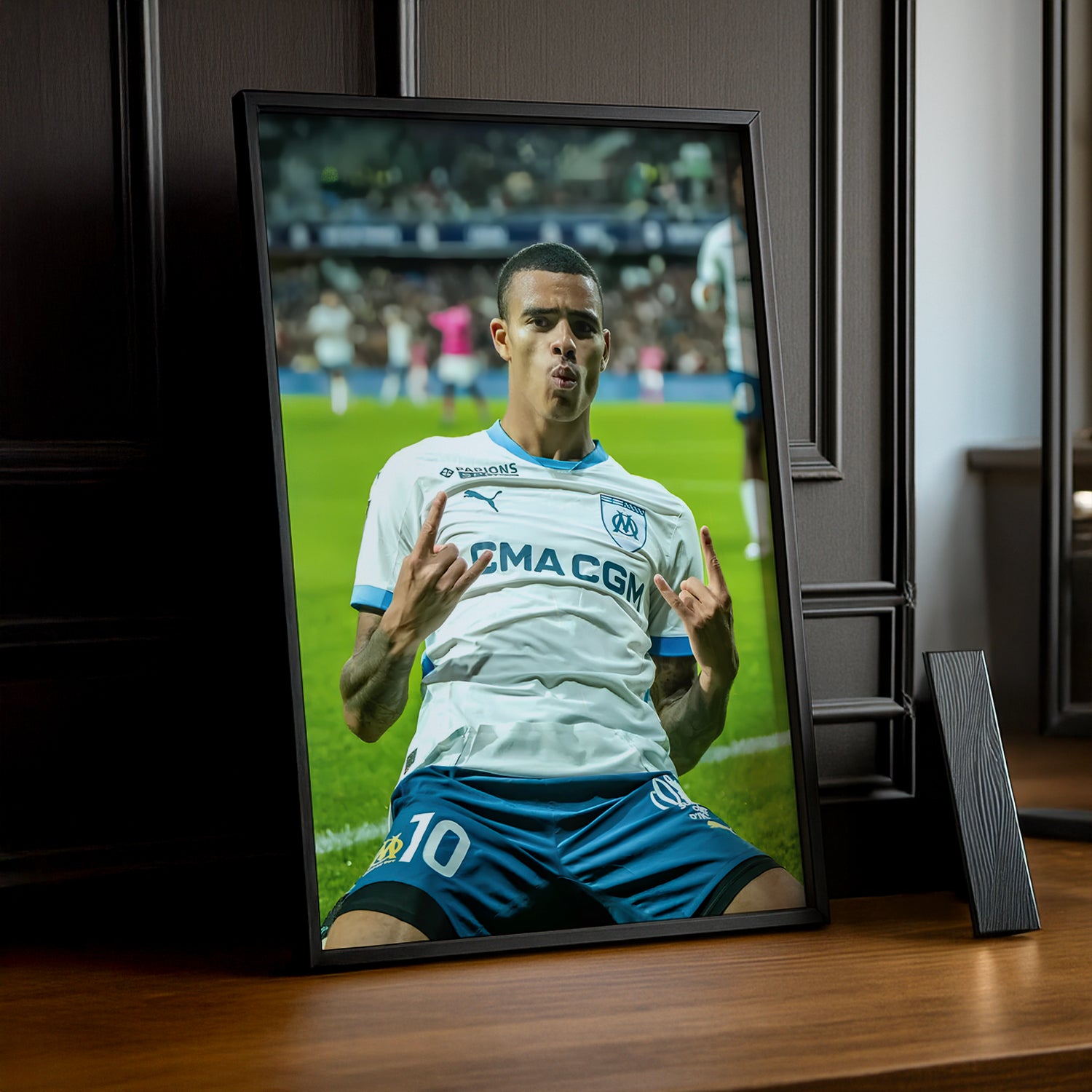 Ajoutez une touche de fraîcheur à votre mur avec ce poster de Greenwood en tenue Olympique de Marseille ! Parfait pour les fans qui aiment suivre les jeunes talents tout en gardant une ambiance fun et dynamique dans leur déco. Un clin d’œil joyeux à la nouvelle génération marseillaise !