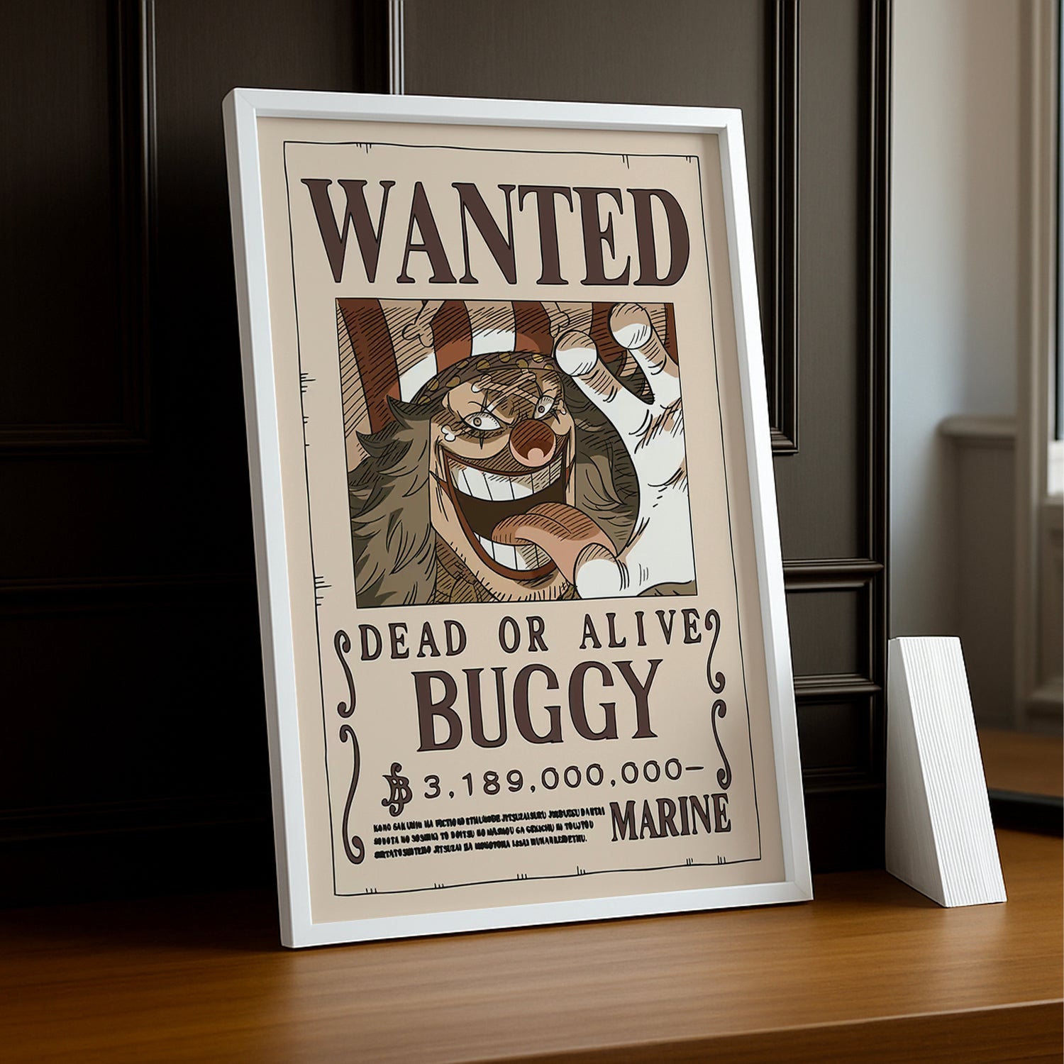 Découvrez le clown chaotique avec ce cadre photo One Piece au format "Wanted" ! Buggy le Clown, le premier antagoniste mémorable aux pouvoirs de démembrement, mérite sa place dans votre galerie. Son humour déjanté et son évolution surprenante en font un personnage attachant malgré ses déboires. Idéal pour les fans qui apprécient son charisme comique et ses apparitions hilarantes. Accrochez-le et laissez Buggy vous rappeler que même les méchants peuvent être attachants !