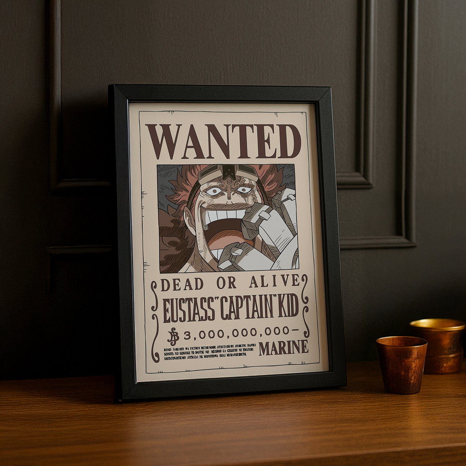 Célébrez le capitaine magnétique avec ce cadre photo One Piece au style "Wanted" ! Eustass Captain Kid, le rival charismatique au pouvoir du métal impressionnant, mérite sa place d'honneur. Son ambition féroce et son évolution remarquable en font un personnage incontournable. Parfait pour les fans qui admirent son attitude rebelle et son alliance stratégique avec Luffy. Accrochez-le et laissez Kid apporter une dose de puissance métallique à votre décoration !