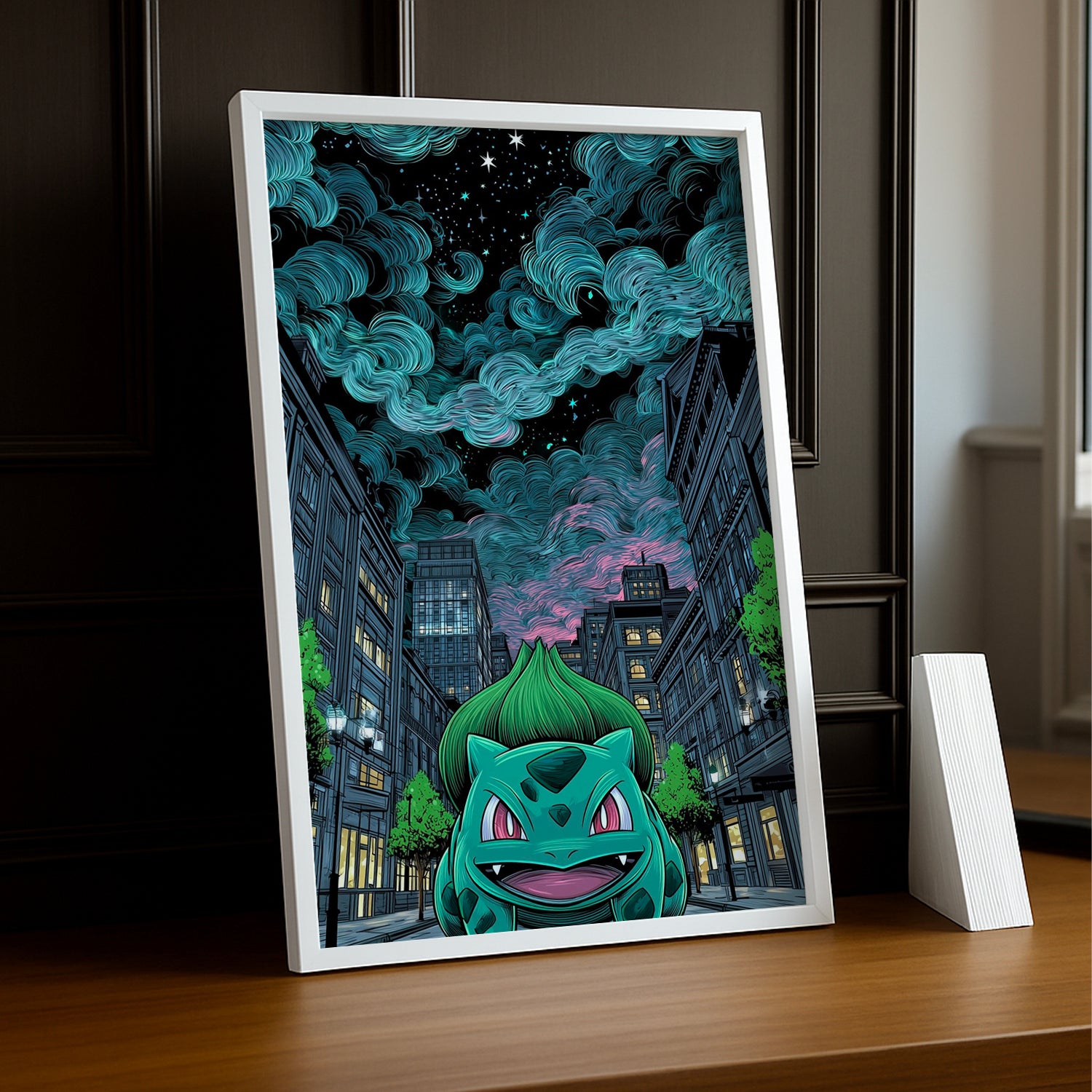 Explorez l'univers urbain avec ce cadre photo Pokémon tendance mettant en scène Bulbizarre dans une ambiance street art dynamique ! Avec ses teintes modernes et son design urbain, ce cadre fusionne l'esthétique contemporaine des rues avec la nostalgie du starter plante emblématique. Parfait pour encadrer vos photos les plus créatives, vos souvenirs de ville ou vos clichés artistiques. Son allure cool et décalée apporte une touche de style et de personnalité à votre décoration intérieure. Un choix parfait pour les fans Pokémon en quête de décoration originale et pour tous ceux qui aiment les créatures revisitées avec un twist urbain et branché !