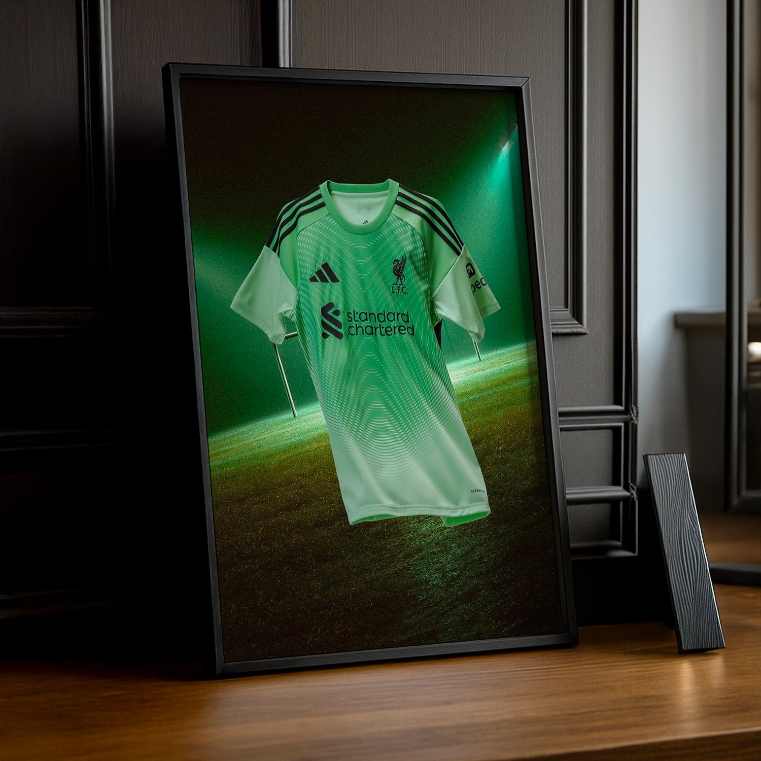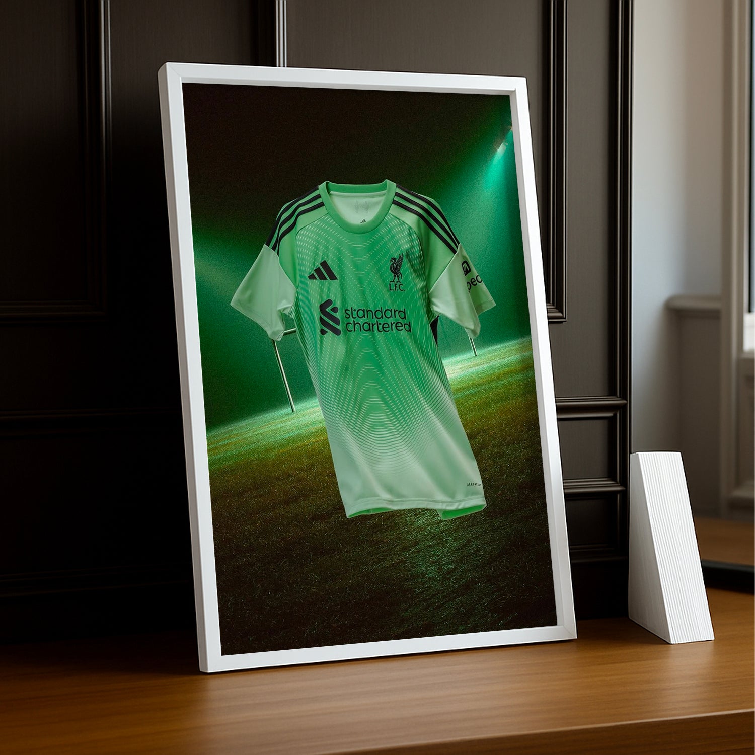 Ajoutez une touche de fun à votre déco avec ce cadre photo mettant en avant le maillot gardien Liverpool FC 25-26 ! Parfait pour les fans qui veulent afficher leurs couleurs avec style et bonne humeur, il garde l’esprit du match toujours vivant chez vous. Un clin d’œil ludique à votre équipe favorite !