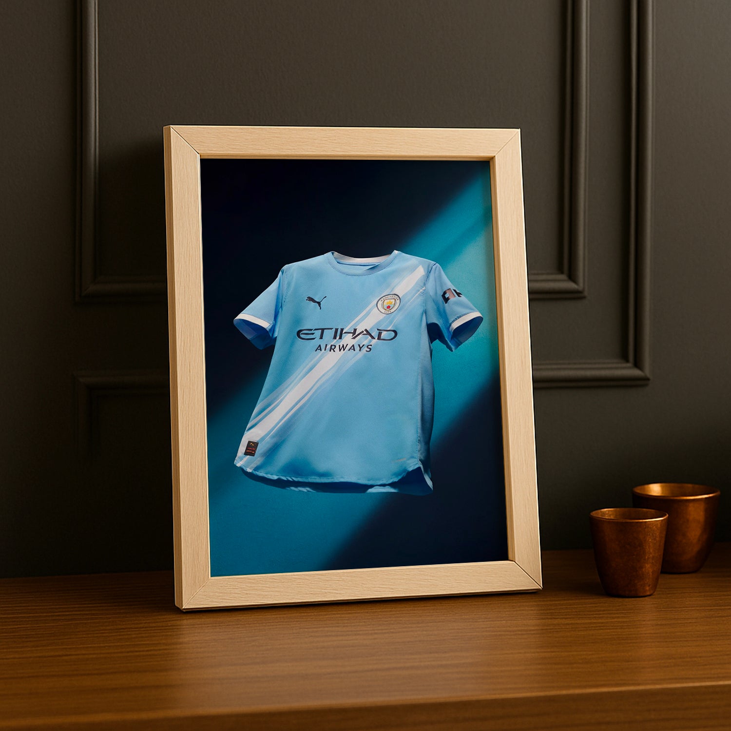 Apportez une touche de gaieté à votre intérieur avec ce cadre photo mettant en vedette le maillot Manchester City 25-26 ! Parfait pour les fans qui veulent afficher leurs couleurs avec énergie et bonne humeur, il garde l’esprit du match toujours vivant chez vous. Un clin d’œil amusant à votre équipe favorite !