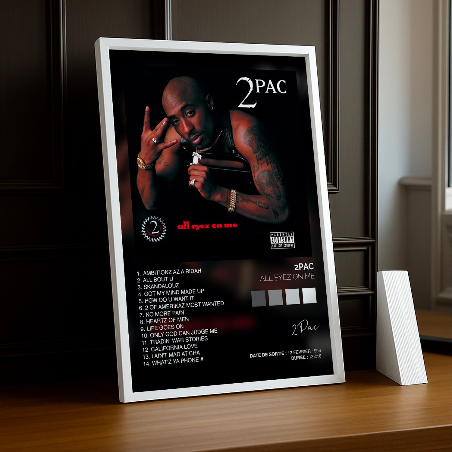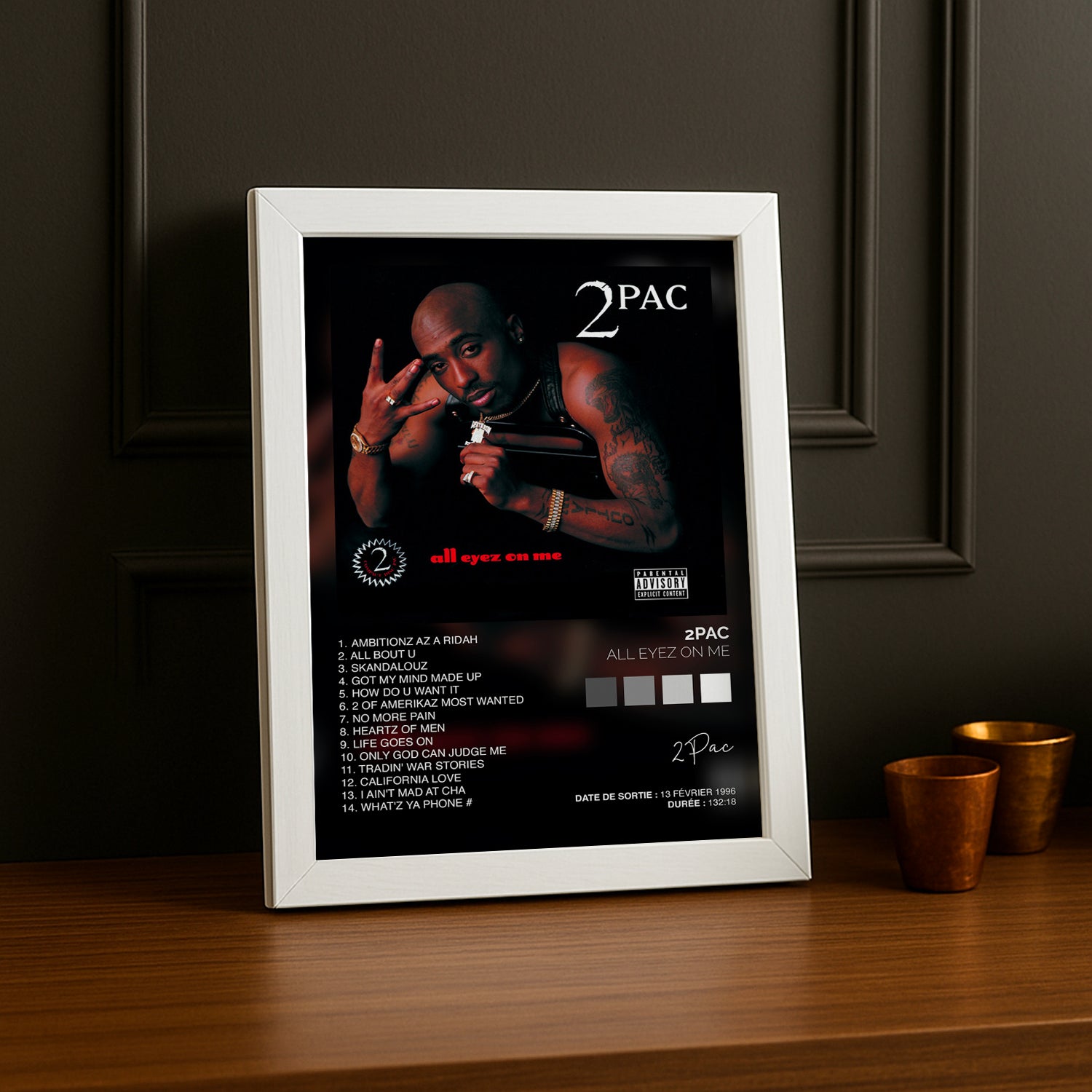 Célèbre l’héritage du légendaire rappeur américain avec ce poster exclusif de l’album "All Eyez On Me" de 2Pac. Symbole du hip-hop des années 90, cette affiche iconique apportera une touche vintage et authentique à ta décoration murale.