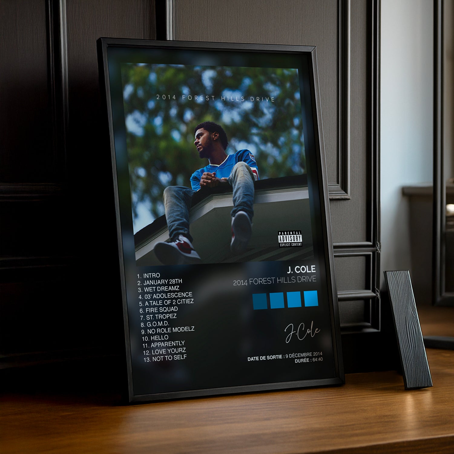 Célèbre l’un des albums les plus influents du rap contemporain avec ce poster exclusif de l’album "2014 Forest Hills Drive" de J. Cole. Cette affiche authentique capture l’essence introspective et puissante de cet opus, parfait pour une décoration urbaine et moderne.