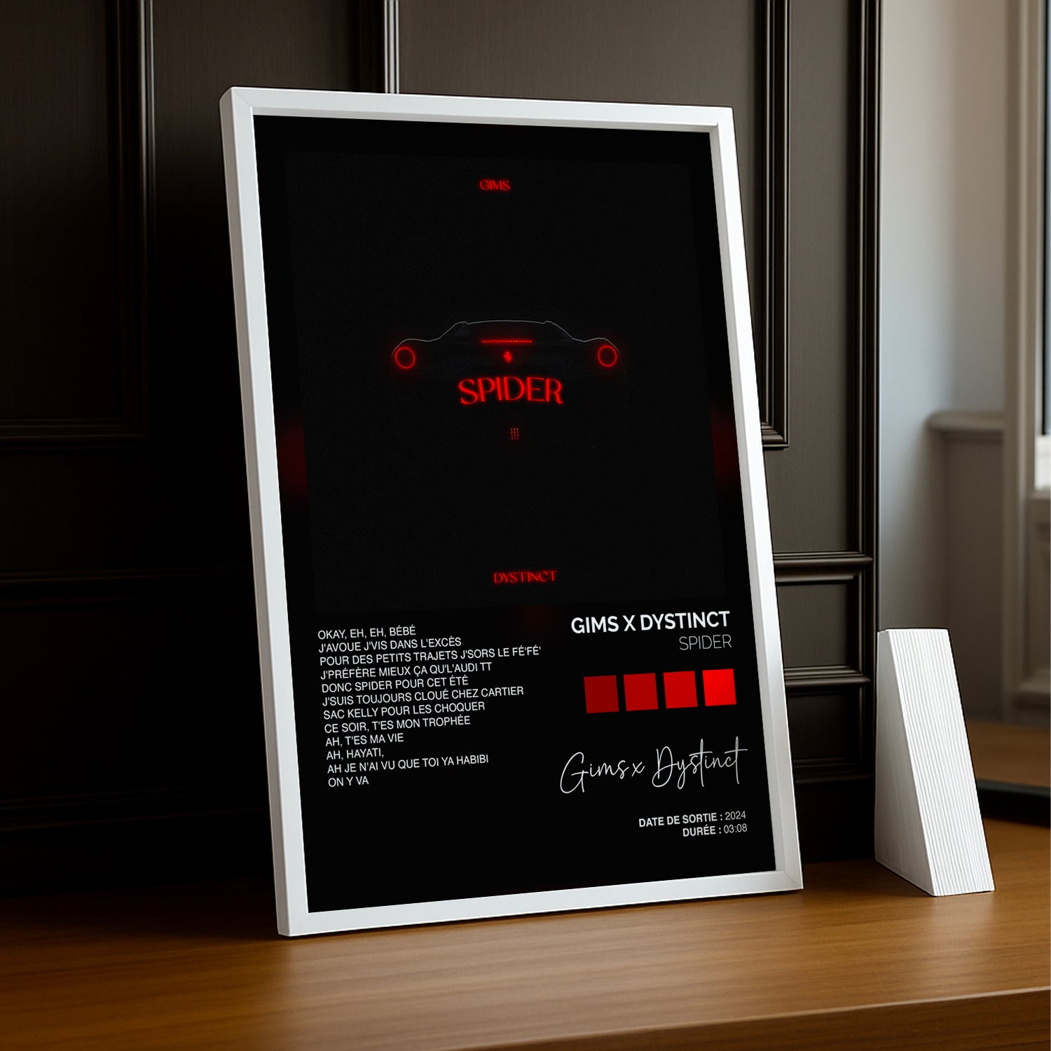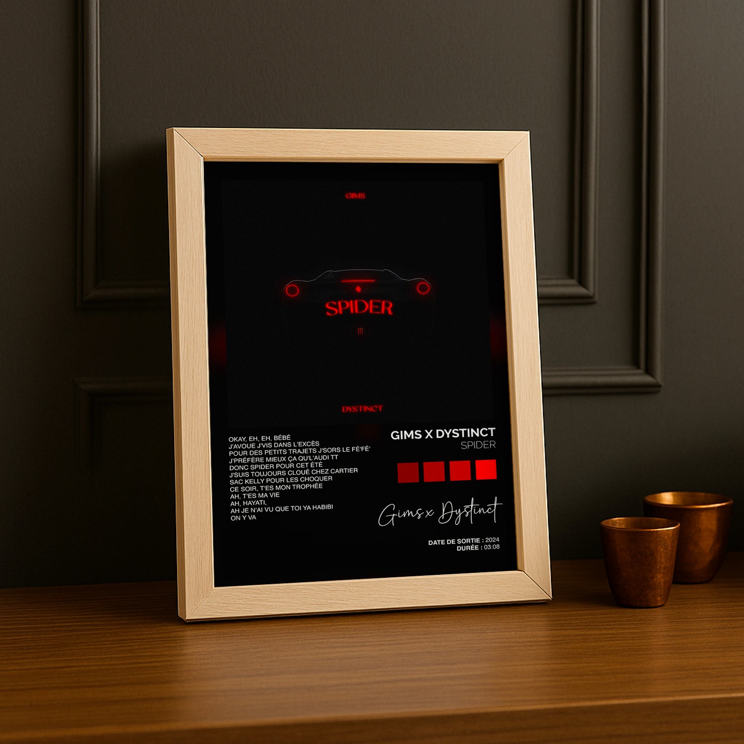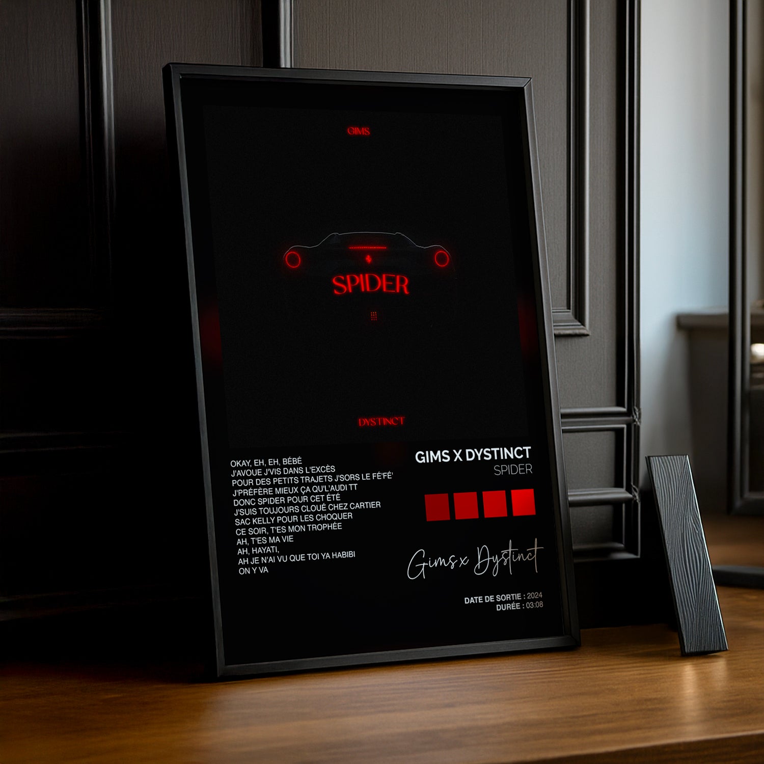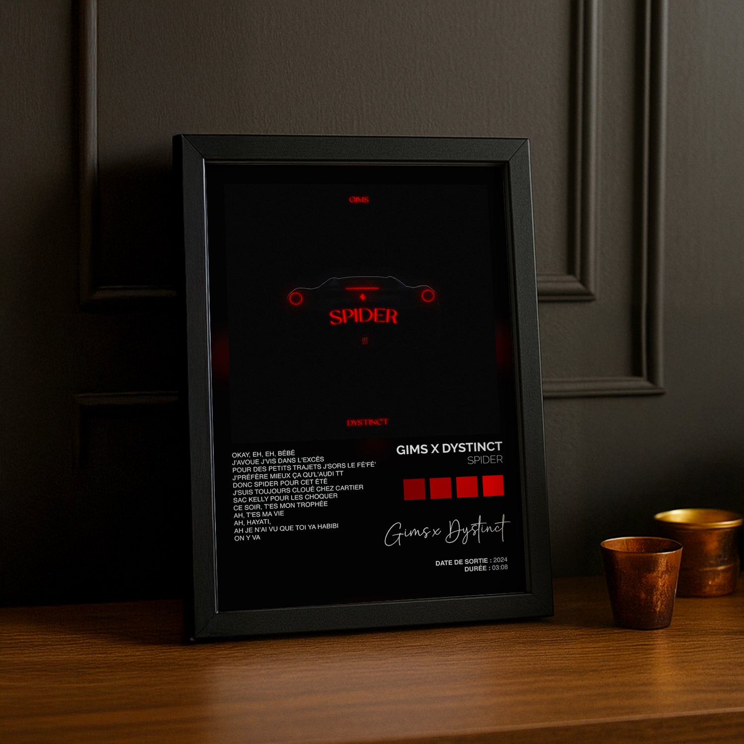 Donnez du peps à votre décoration avec ce cadre photo Titre Musicaux - Spider de Gims x Dystinct. Idéal pour mettre en valeur vos souvenirs tout en rendant hommage à ce duo captivant. Une touche originale et pleine de vie pour faire vibrer vos murs avec style et bonne humeur !