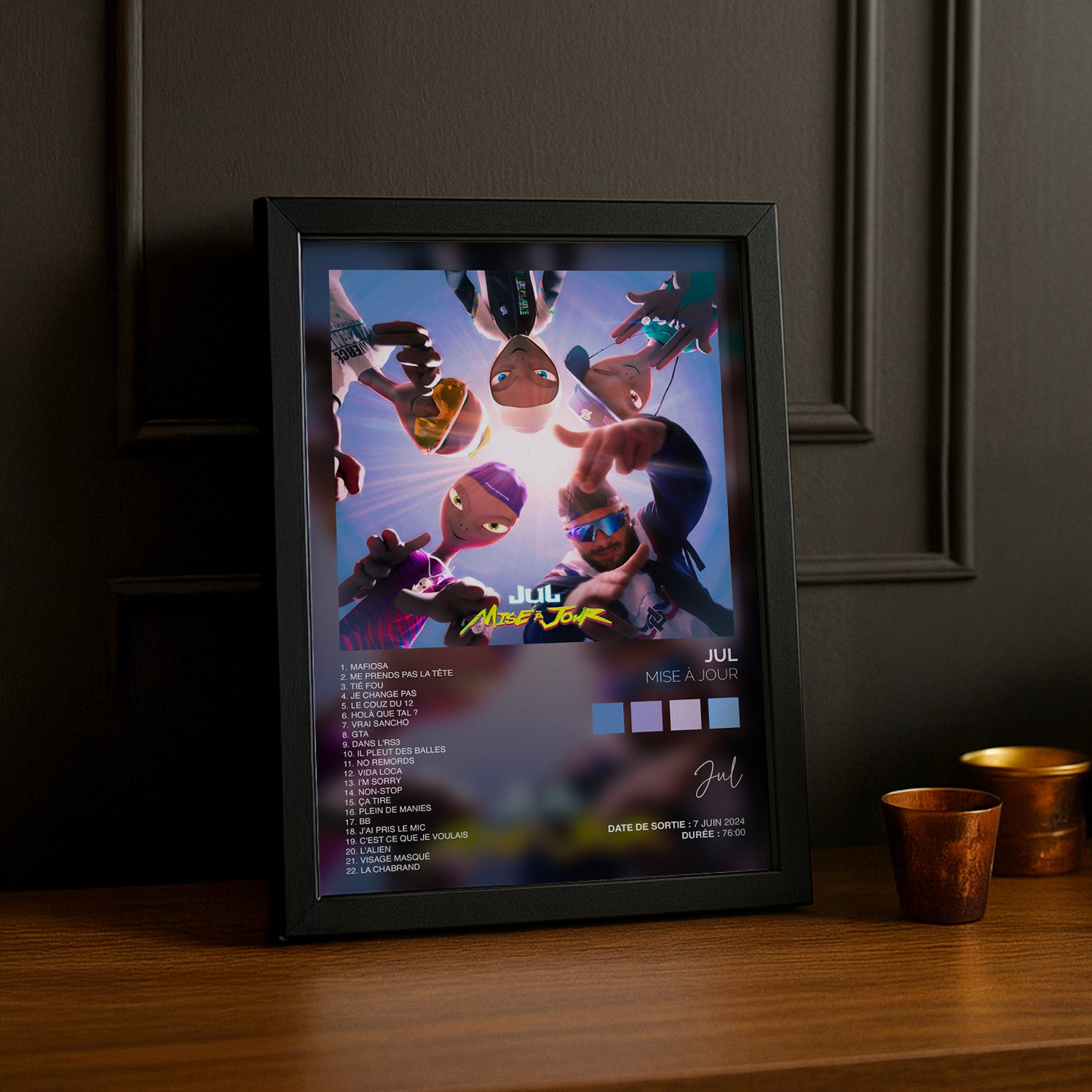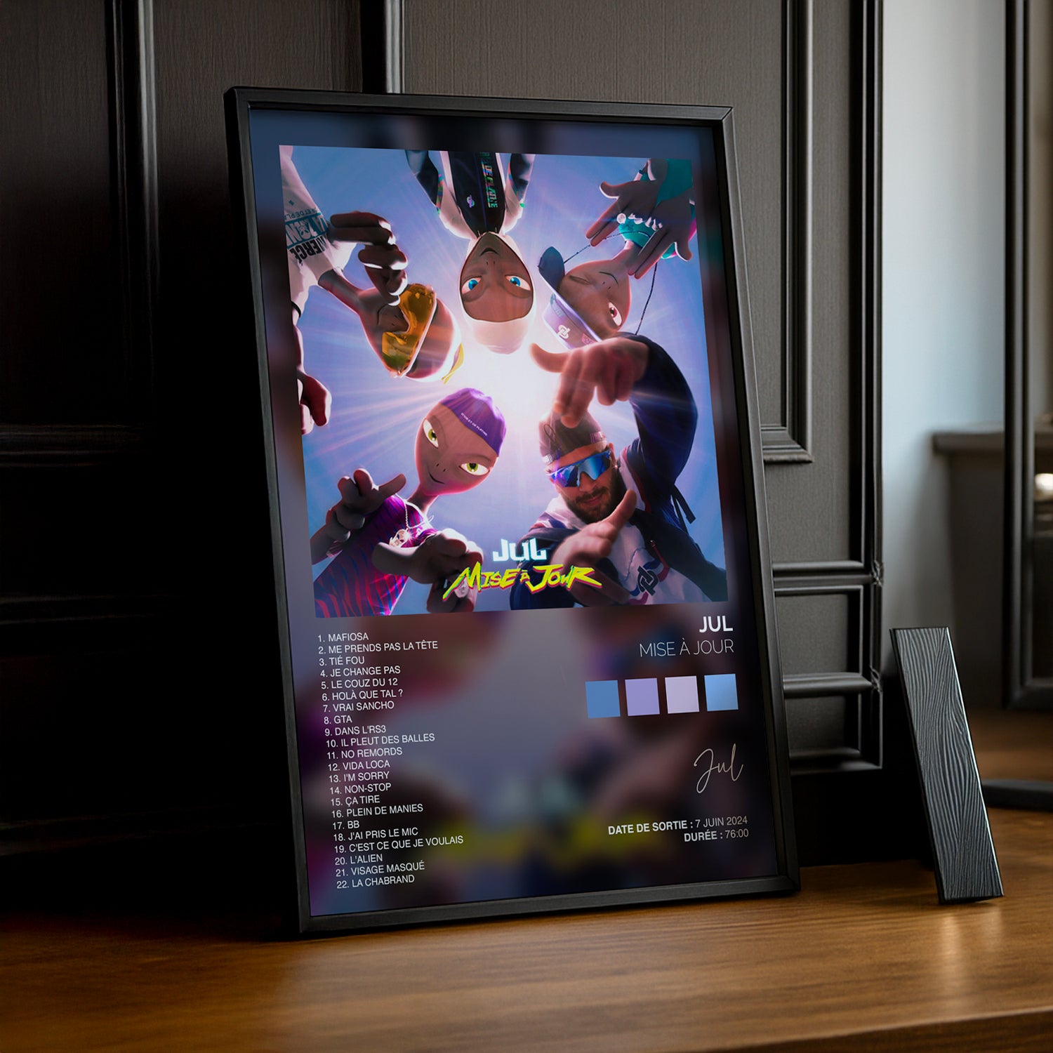 Mets à jour ta déco avec ce poster exclusif de l’album "Mise à jour" de Jul, reflet de l’énergie et du style unique du rappeur marseillais. Cette affiche colorée et dynamique est parfaite pour sublimer ton intérieur avec une touche urbaine et moderne.