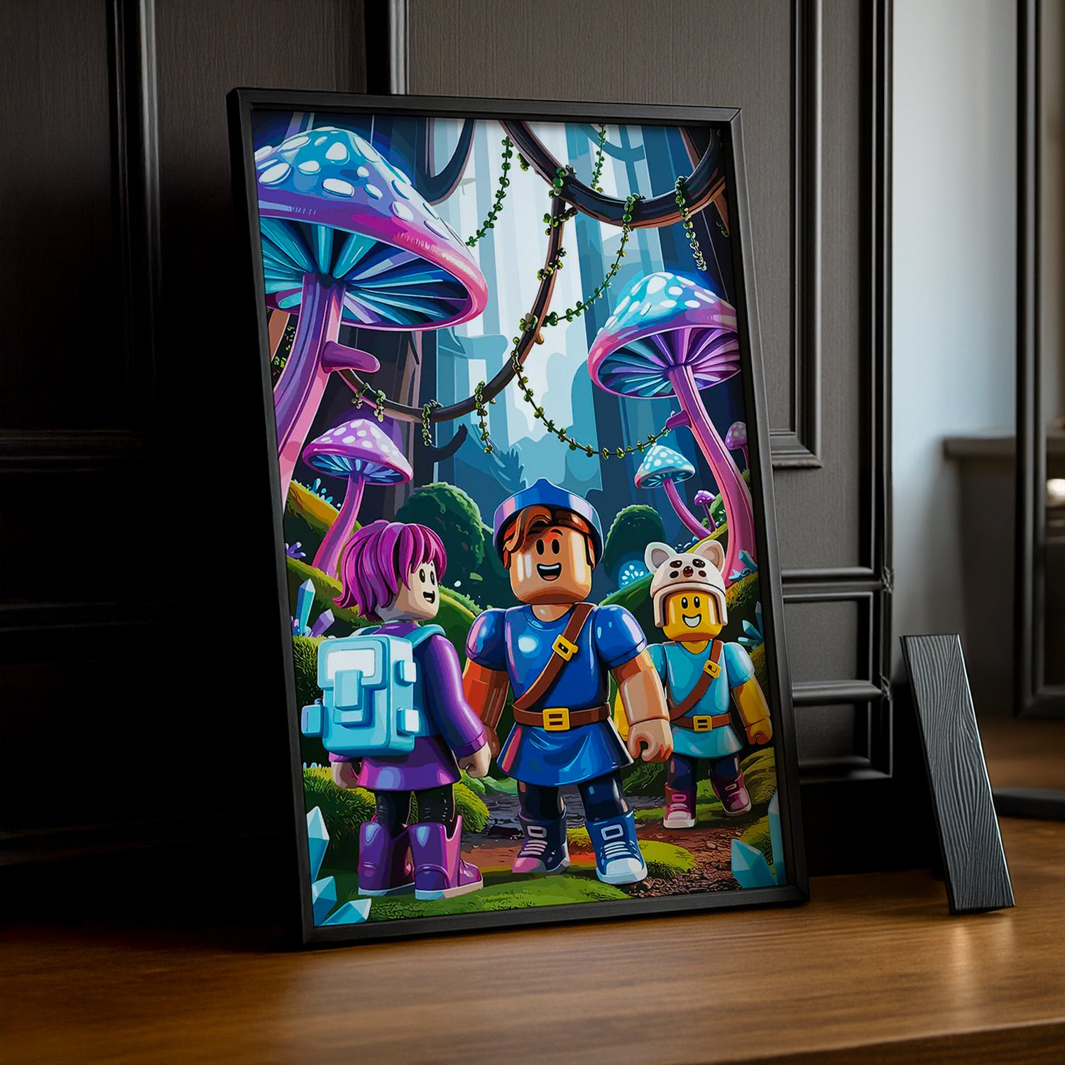 Explorez des mondes enchantés avec ce cadre photo Roblox Mushrooms ! Un design fantaisiste et coloré pour les gamers qui adorent les univers magiques et mystérieux. Ce cadre aux champignons mignons et loufoques ajoute une touche de fantaisie à votre décoration gaming. Parfait pour afficher vos aventures dans les mondes fantastiques, vos créations imaginaires ou vos moments les plus amusants sur Roblox. Un accessoire qui transforme votre espace en forêt enchantée de souvenirs. À avoir pour tous les fans Roblox qui rêvent en couleurs !