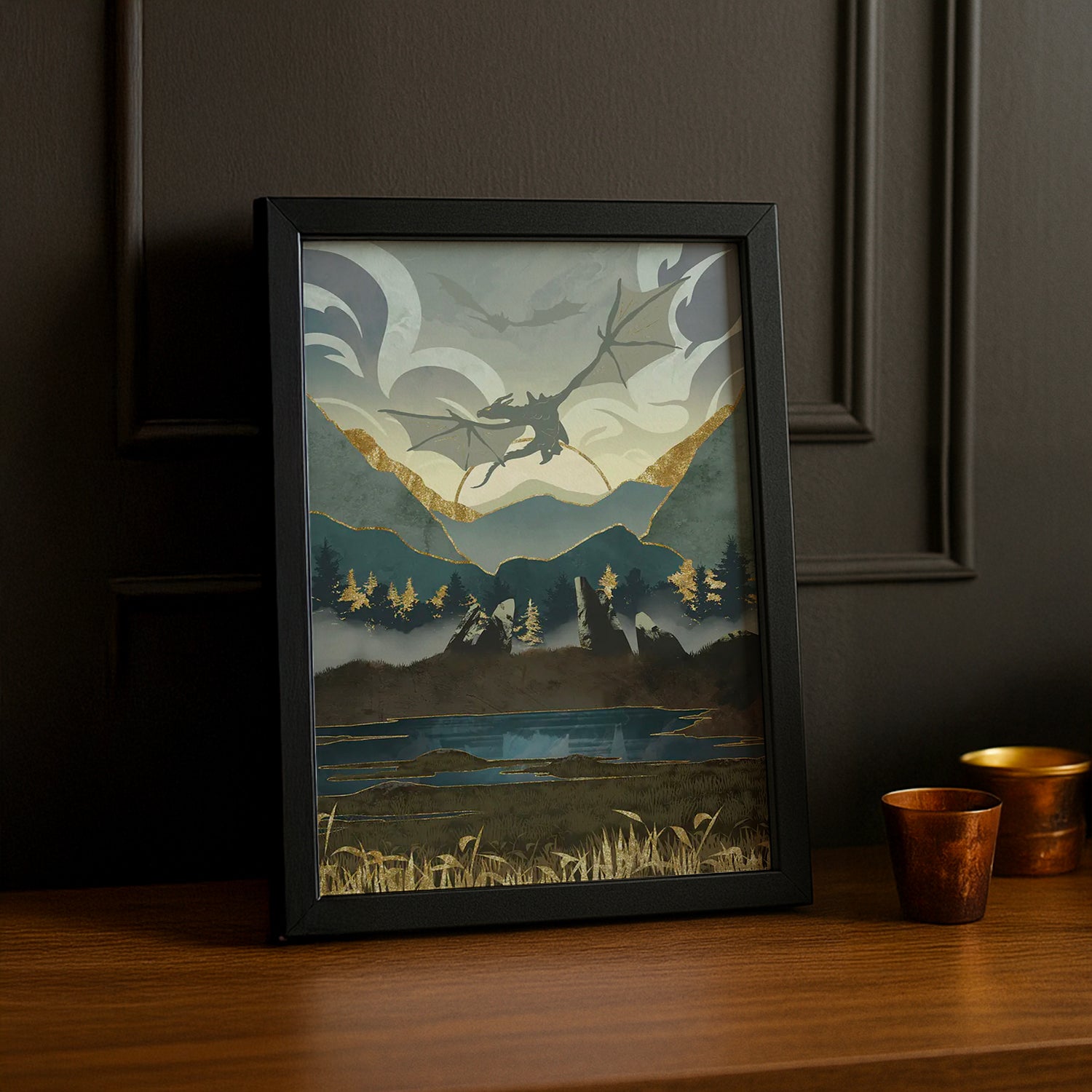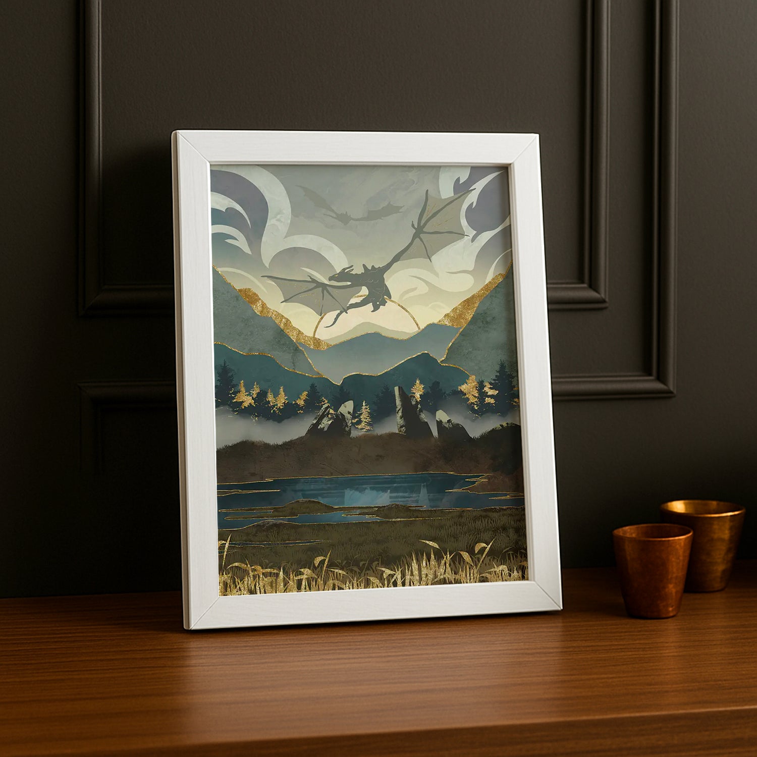 Laissez les dragons prendre leur envol dans votre décoration avec ce cadre photo spectaculaire ! Capturez la majesté des créatures ailées de Skyrim en plein vol, un spectacle qui ravira tous les fans de The Elder Scrolls. Cet accessoire transforme votre mur en ciel nordique peuplé de dragons redoutables et magnifiques. Parfait pour ceux qui frissonnent au son du cri des dragons et qui adorent ces moments d'action épique. Affichez votre passion pour les créatures les plus impressionnantes du jeu !