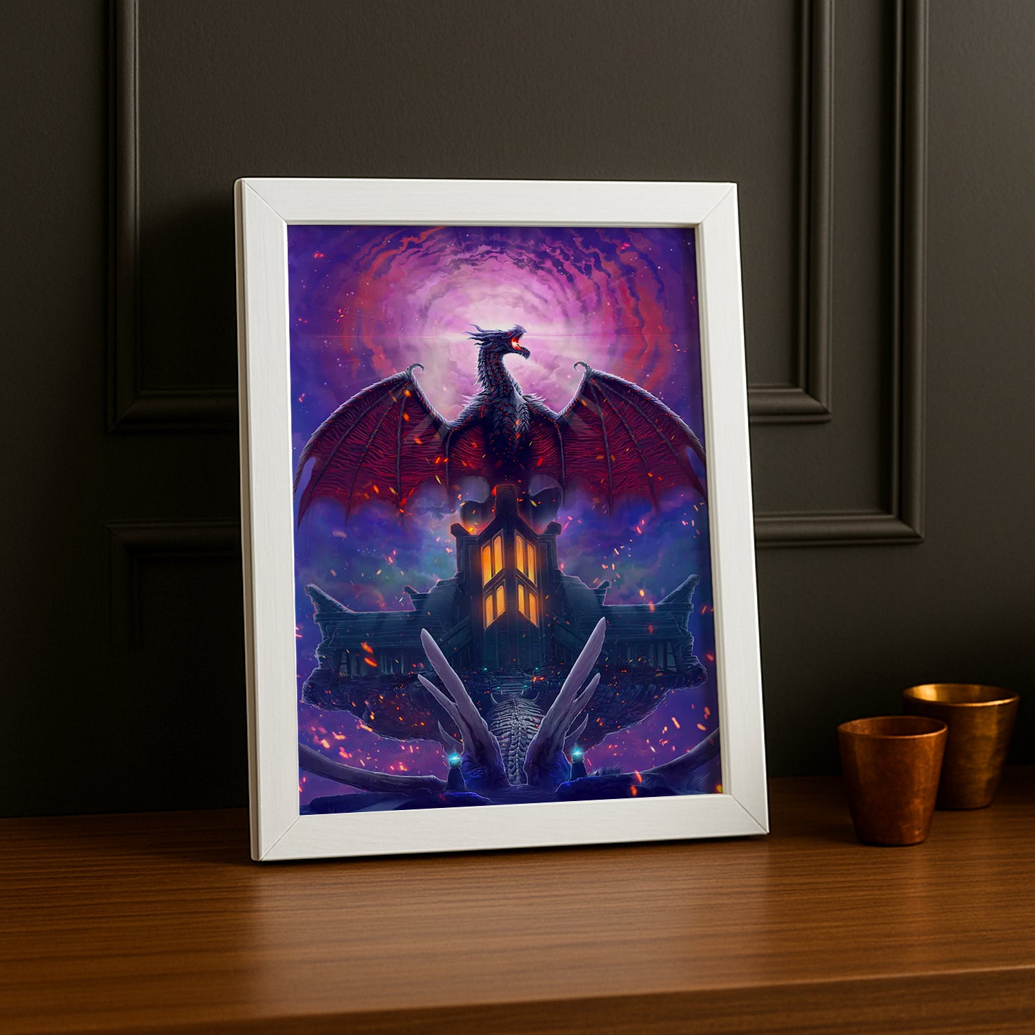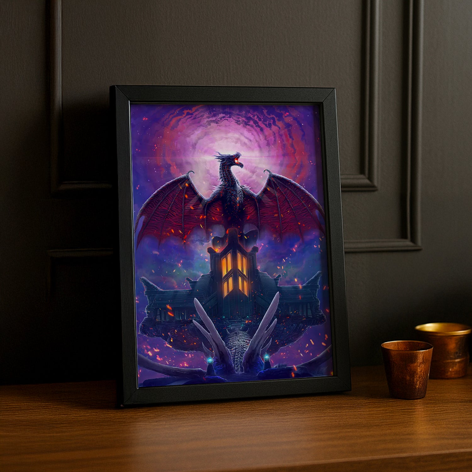 Dominez votre décoration avec ce cadre photo mettant en avant Alduin dans toute sa gloire ! Cet accessoire capture l'essence brute et terrifiante du seigneur des dragons, parfait pour les fans qui vénèrent les créatures les plus puissantes de Skyrim. Transformez votre mur en trône du Dévoreur de Mondes et affirmez votre admiration pour ce titan légendaire. Un must-have pour ceux qui préfèrent célébrer les antagonistes les plus impressionnants de The Elder Scrolls !