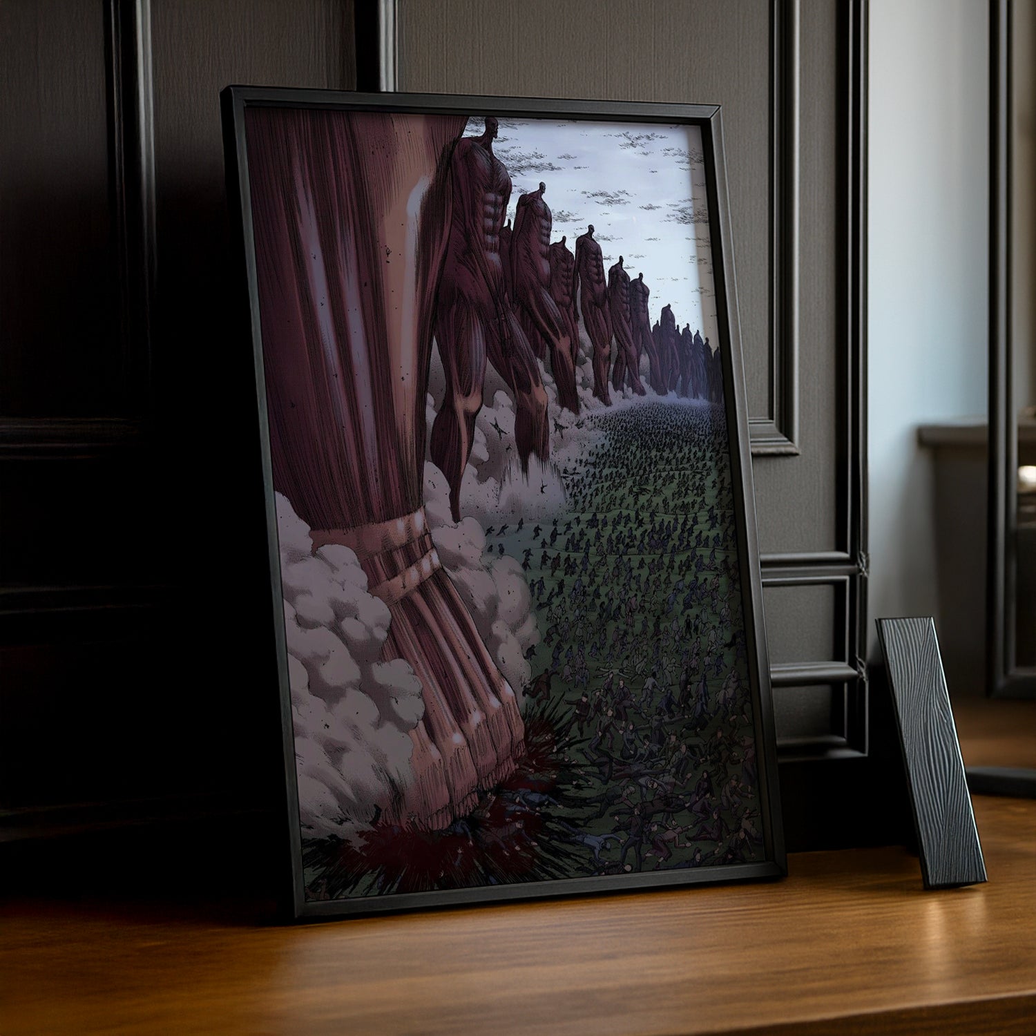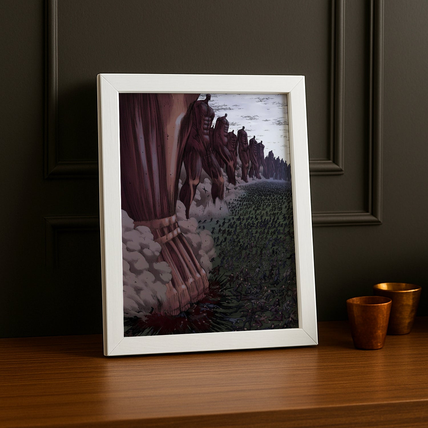 Face aux géants qui terrorisent l'humanité avec ce cadre photo Attack On Titan dédié aux Titans ! Showcasez la puissance brute et l'impressionnante présence de ces créatures légendaires. Idéal pour les fans qui frissonnent à chaque apparition de ces monstres colossaux. Transformez votre mur en champ de bataille et affirmez votre amour pour les scènes les plus intenses de la série. Un cadre qui ne passe pas inaperçu !