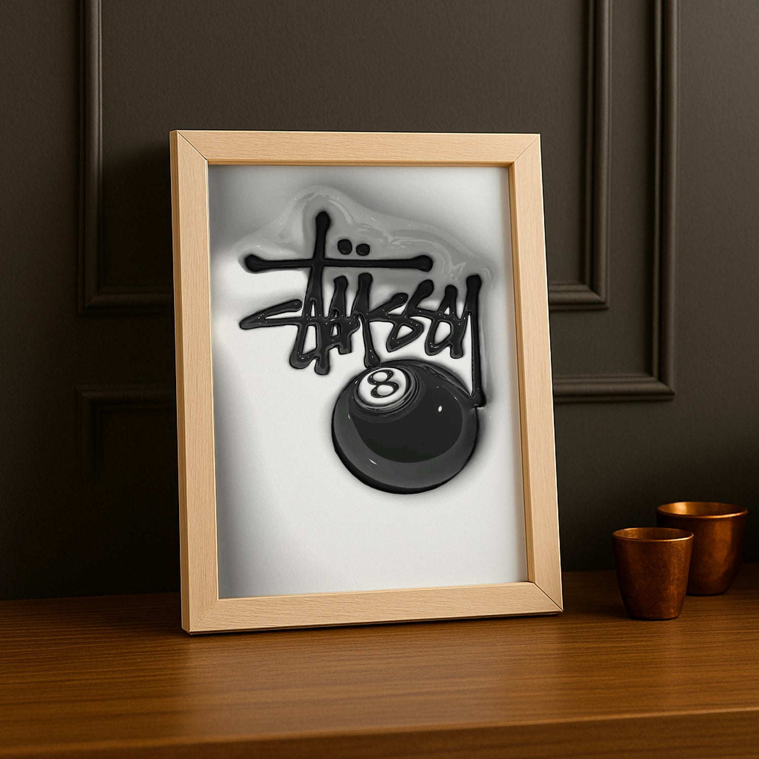 Apportez une touche urbaine et moderne à votre intérieur avec ce cadre photo Stüssy 8 Logo, symbole emblématique du streetwear. Le design graphique audacieux et minimaliste de l’incontournable logo "8 Ball" de Stüssy reflète l’essence de la culture skate et surf californienne, tout en incarnant un style intemporel et rebelle.