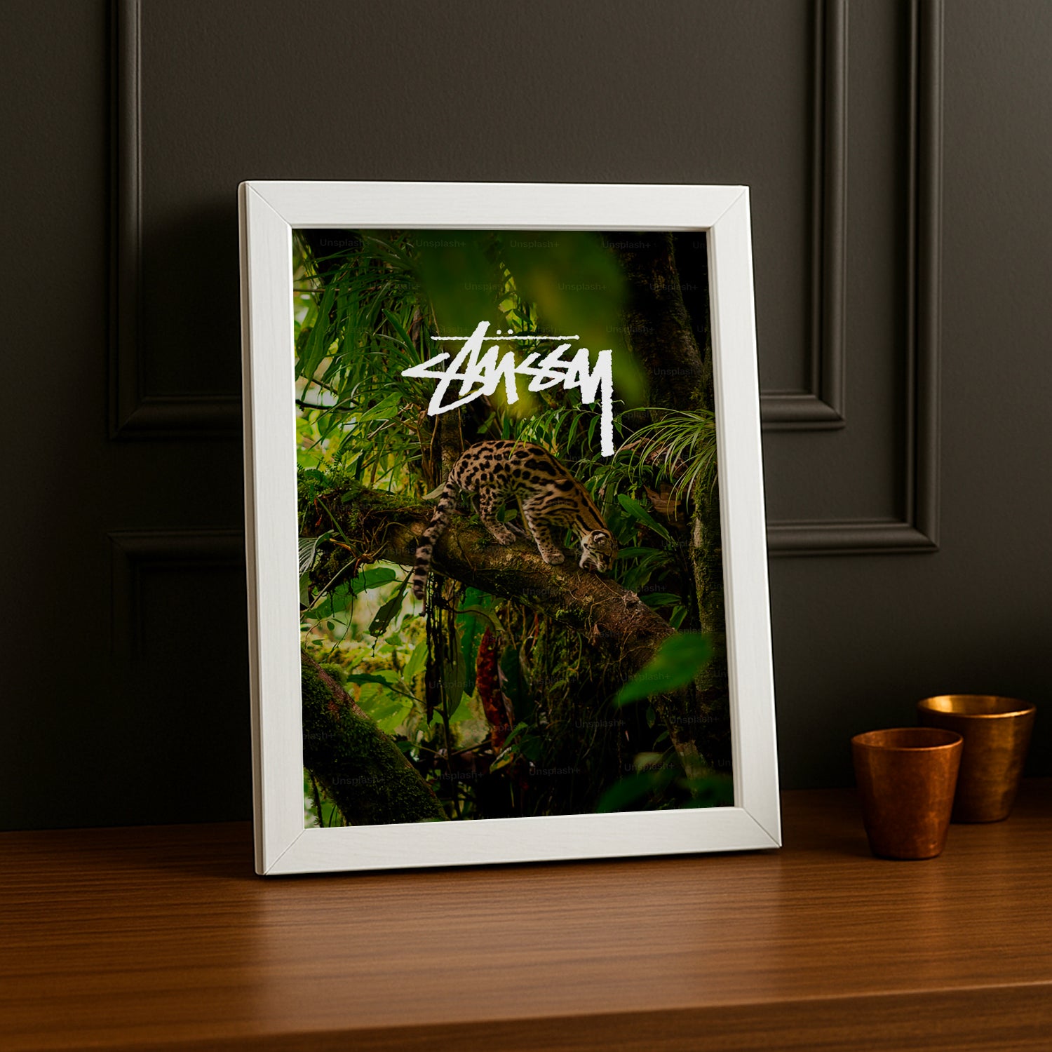Apportez une touche sauvage et stylée à votre intérieur avec le cadre photo Stüssy - Jungle. Son design unique mêle l’esprit urbain à une ambiance tropicale, parfait pour mettre en valeur vos souvenirs les plus fun. Facile à accrocher, il transforme instantanément vos murs en une véritable aventure visuelle. Idéal pour les amateurs de déco qui aiment sortir des sentiers battus !