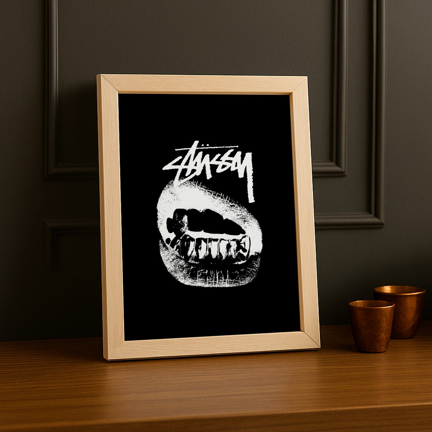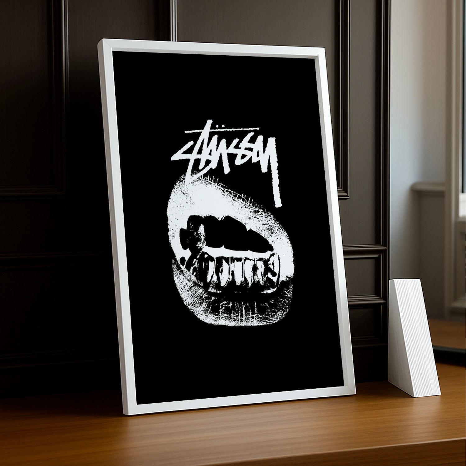 Disponible en plusieurs formats et finitions, le cadre photo Stüssy Lips est une pièce de choix pour personnaliser votre intérieur tout en exprimant votre amour pour l’esthétique streetwear et l’art contemporain.