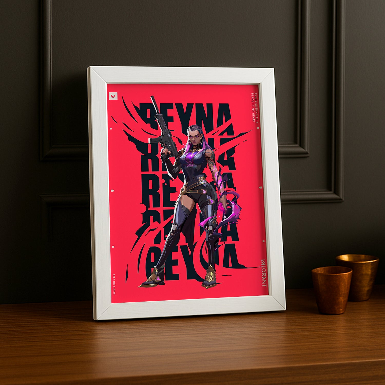 Dominez avec style grâce au cadre photo Valorant Reyna ! Célébrez la reine de la frappe avec cet accessoire dédié à l'agent le plus charismatique du jeu. Affichez vos kills spectaculaires, vos aces mémorables ou vos moments de gloire où vous avez porté votre équipe à la victoire. Ce cadre radieux incarne la confiance et la puissance de Reyna. Parfait pour les joueurs qui aiment briller en première ligne et qui ne craignent pas de prendre les devants. Transformez votre décoration gaming en temple de la domination et de l'élégance !