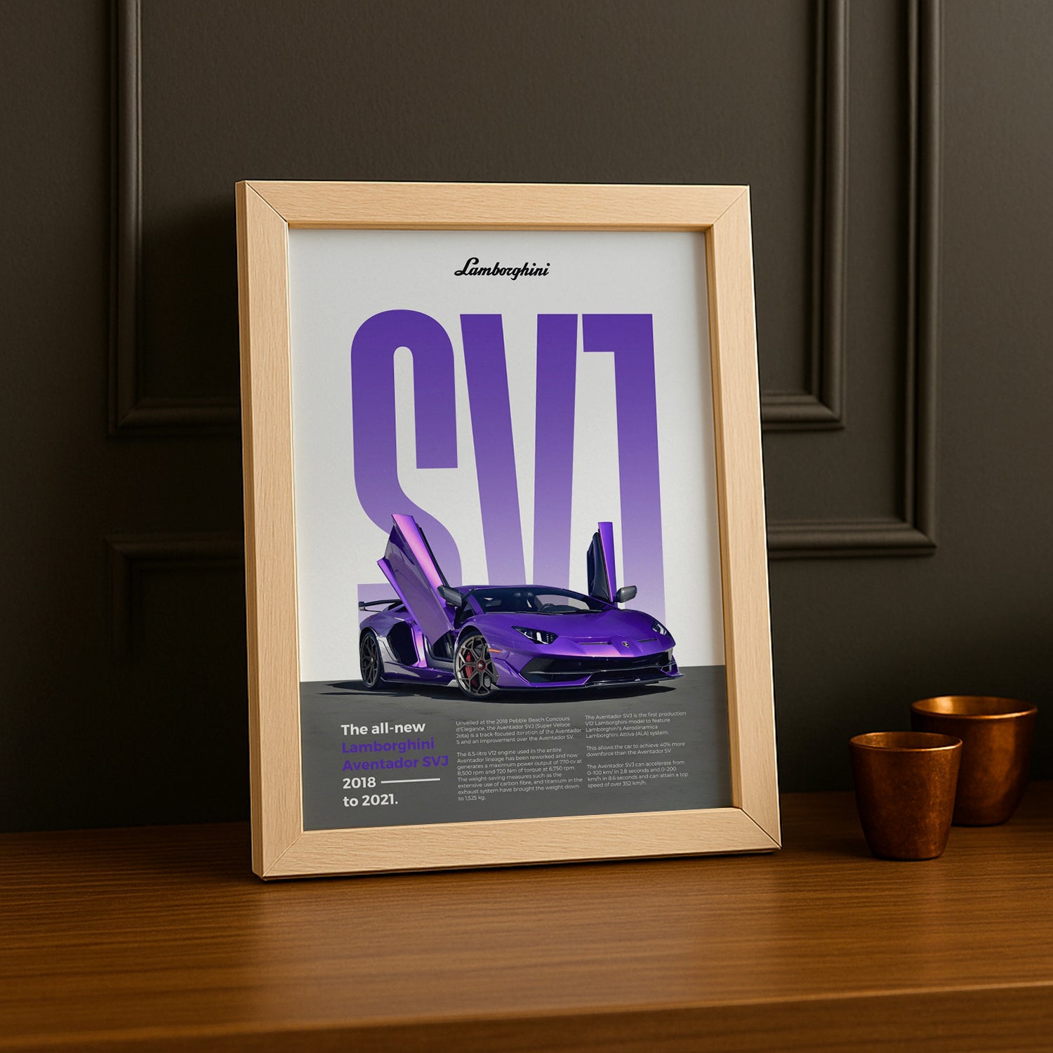 Faites vrombir votre déco avec ce poster de la Lamborghini Aventador SVJ, un bolide ultra-puissant au design agressif et futuriste. Parfait pour les passionnés qui veulent allier style et adrénaline chez eux, ce poster apporte une touche de fun et de dynamisme à vos murs. Laissez la Aventador SVJ prendre la pole position de votre intérieur !