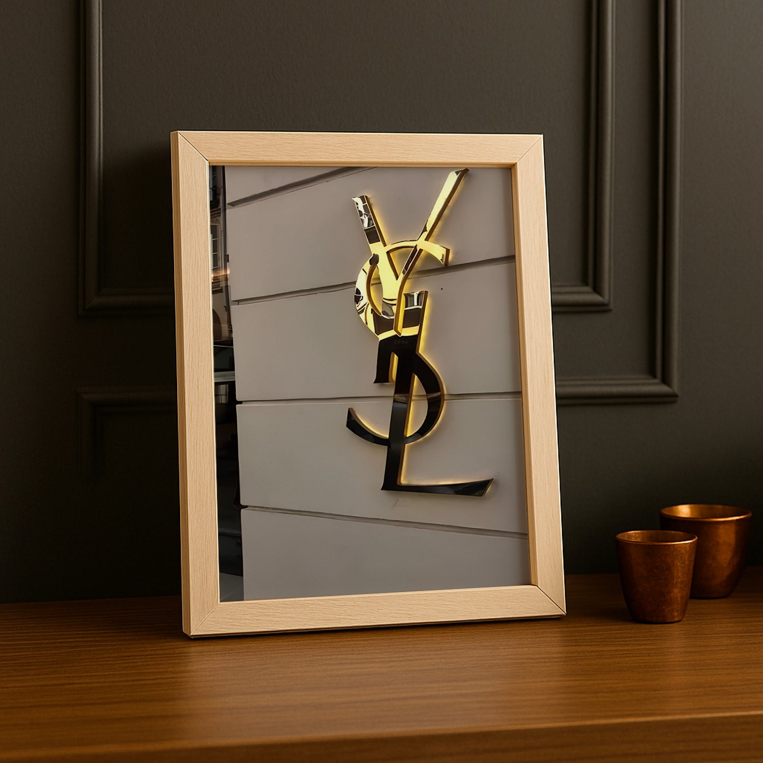 Brillez de mille feux avec ce cadre photo Yves Saint Laurent - Golden Logo ! Orné du prestigieux logo YSL en doré, ce cadre incarne le luxe et l'exclusivité. Chaque détail respire l'élégance parisienne et le prestige intemporel de la maison de couture. Parfait pour mettre en avant vos souvenirs les plus précieux, il transforme votre photo en véritable joyau de décoration. Son finition dorée ajoute une touche de glamour et de sophistication à votre intérieur. Un accessoire qui proclame votre amour pour le style et l'excellence !