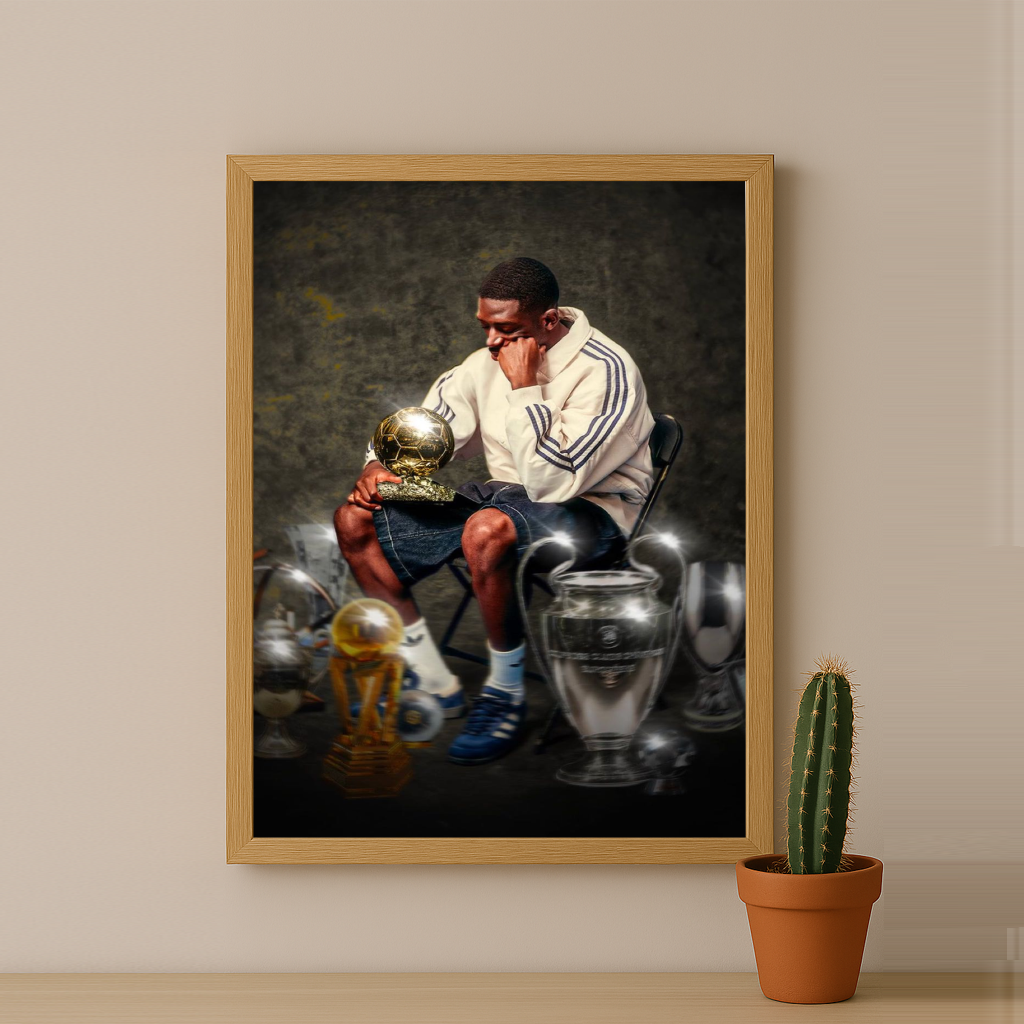 Mettez en avant votre star préférée avec ce cadre photo Ousmane Dembélé Ballon d'Or ! Un accessoire fun et élégant pour immortaliser vos souvenirs footballistiques. Parfait pour personnaliser votre déco avec une touche sportive et pleine d’énergie. Offrez un cadre aussi dynamique que le champion lui-même !